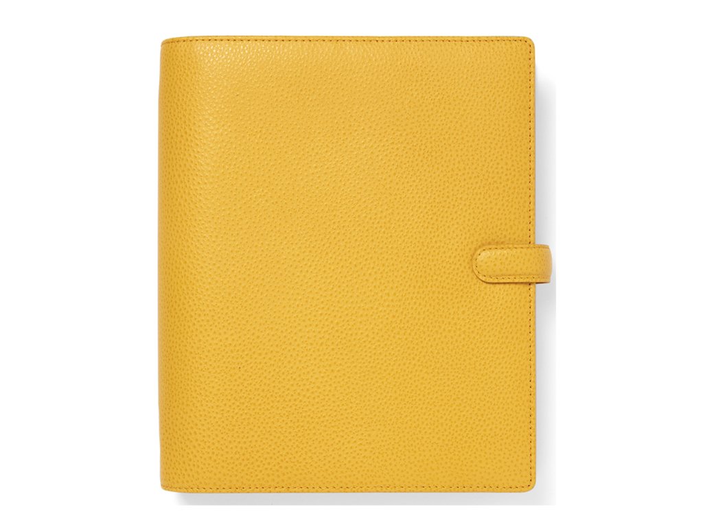 Klasický, výrazný a stylový, takový je kožený diář z kolekce Finsbury. Desky velikosti A5 v barvě hořčice jsou vyrobeny z naší jedinečné a měkké kůže, která byla ručně zpracována tak, aby bylo dosaženo dvojbarevného efektu. Nepostradatelný pomocník vašeho každodenního plánování.HLAVNÍ PŘEDNOSTI