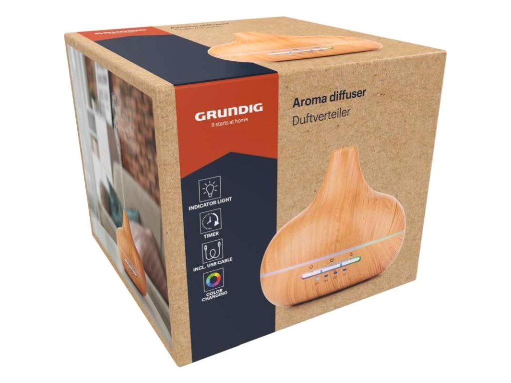 Vytvořte u vás doma relaxační a voňavé prostředí s Aroma difuzérem Grundig. Tento elektrický aroma difuzér kombinuje aromaterapii se zvlhčováním vzduchu, což přináší osvěžující atmosféru a uvolňuje suchý vzduch. Díky nastavitelnému časovači atmosféru vytvářejícím LED osvětlení je tento difuzér praktickým a stylovým doplňkem do každé domácnosti.
