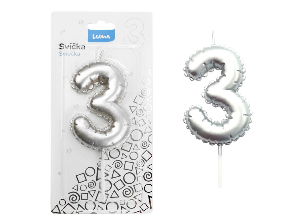 Svíčka dortová č. 3 - stříbrná