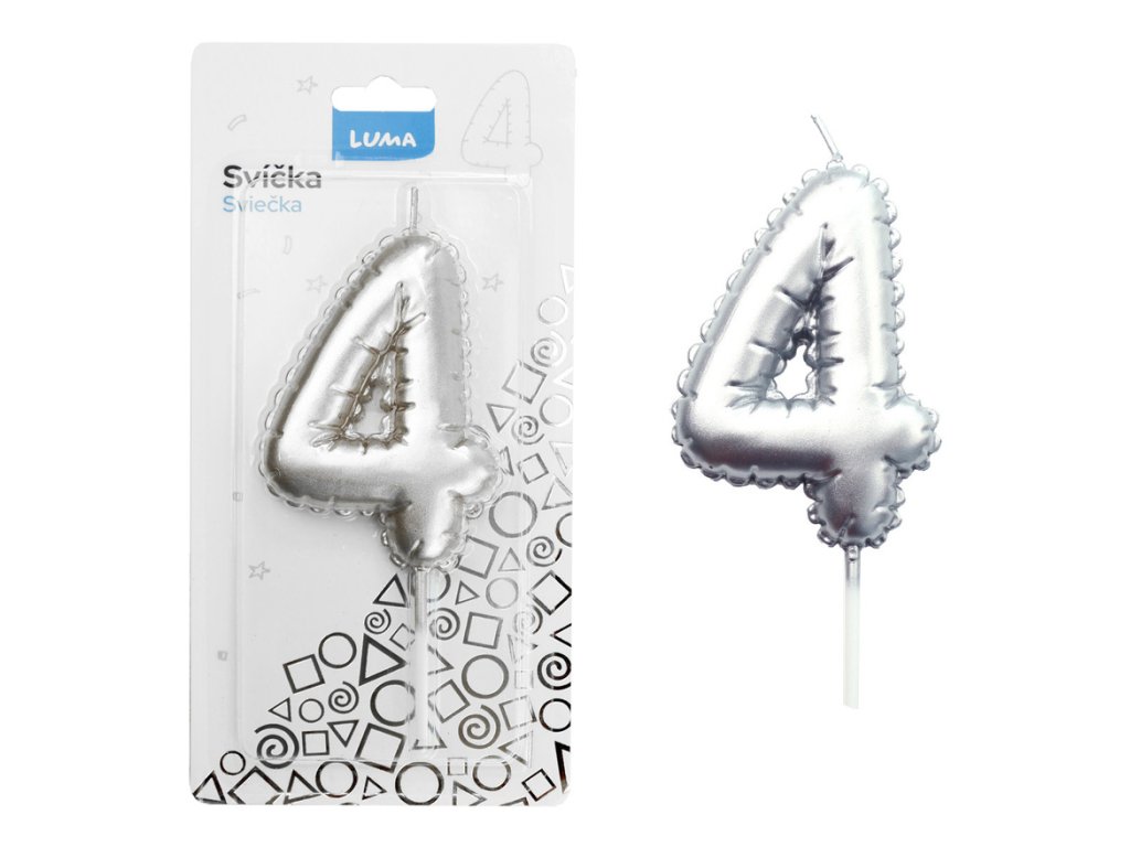 Svíčka dortová č. 4 - stříbrná
