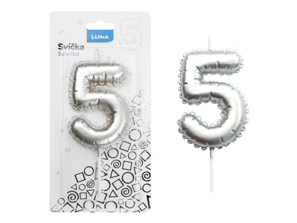 Svíčka dortová č. 5 - stříbrná