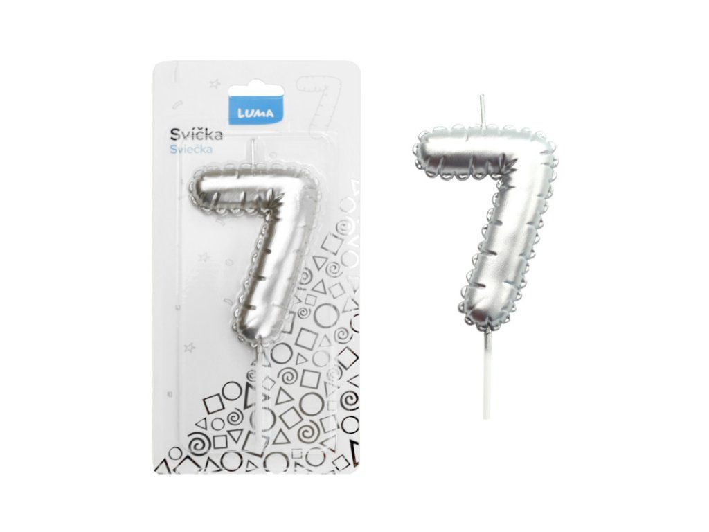 Svíčka dortová č. 7 - stříbrná