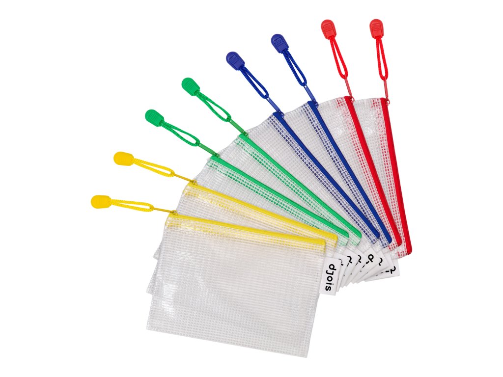 Vysoce odolná poloprůhledná obálka zpevněná síťovinou. Vhodná pro přenos a ochranu drobných předmětů, dokladů, hotovosti apod. Barevný kovový uzávěr zipu s poutkem pro snadnou manipulaci. Boční textilní poutko pro uchycení pera.Doplňkové parametry