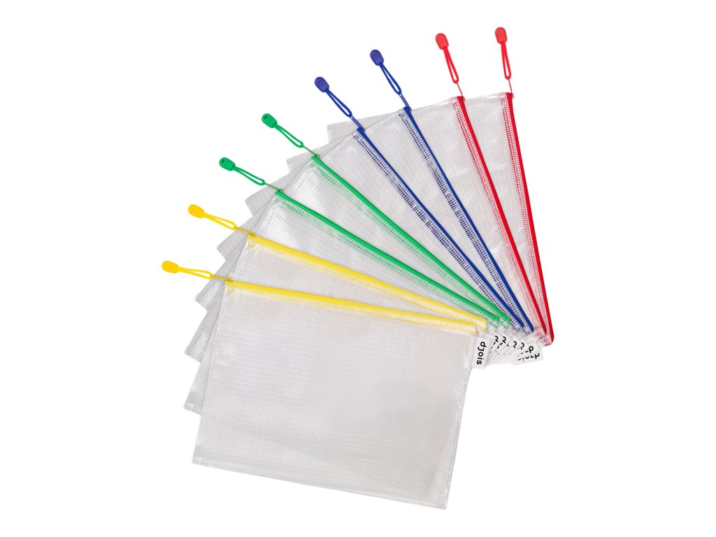 Vysoce odolná poloprůhledná obálka zpevněná síťovinou. Vhodná pro přenos a ochranu drobných předmětů, dokladů, hotovosti apod. Barevný kovový uzávěr zipu s poutkem pro snadnou manipulaci. Boční textilní poutko pro uchycení pera.Doplňkové parametry