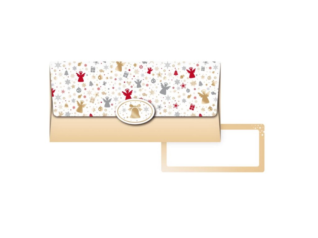 Dárková obálka na peníze s vánočním motivem a uzavíratelnou klopou. Darujte svým blízkým dárek k Vánocům v podobě obálky na peníze. Do obálky lze vložit peníze nebo dárkový poukaz. Uvnitř je kartička bez textu, na kterou můžete napsat věnování. BARVA: béžová/bílá MOTIV: andílci, dárečky, ozdobyDoplňkové parametry