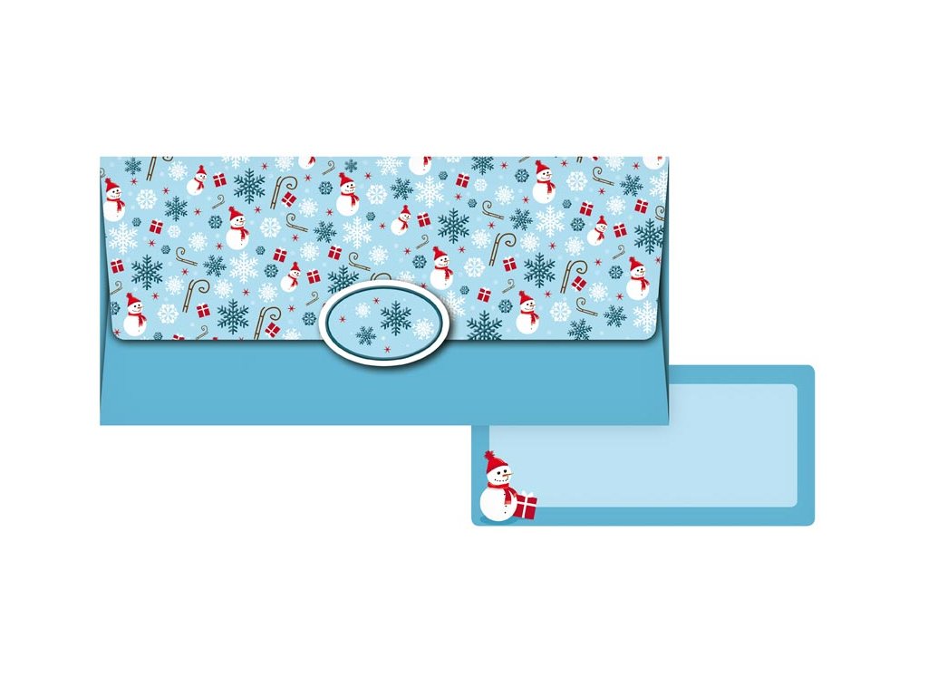 Dárková obálka na peníze s vánočním motivem a uzavíratelnou klopou. Darujte svým blízkým dárek k Vánocům v podobě obálky na peníze. Do obálky lze vložit peníze nebo dárkový poukaz. Uvnitř je kartička bez textu, na kterou můžete napsat věnování. BARVA: modrá MOTIV: sněhuláci, sáně, vločkyDoplňkové parametry