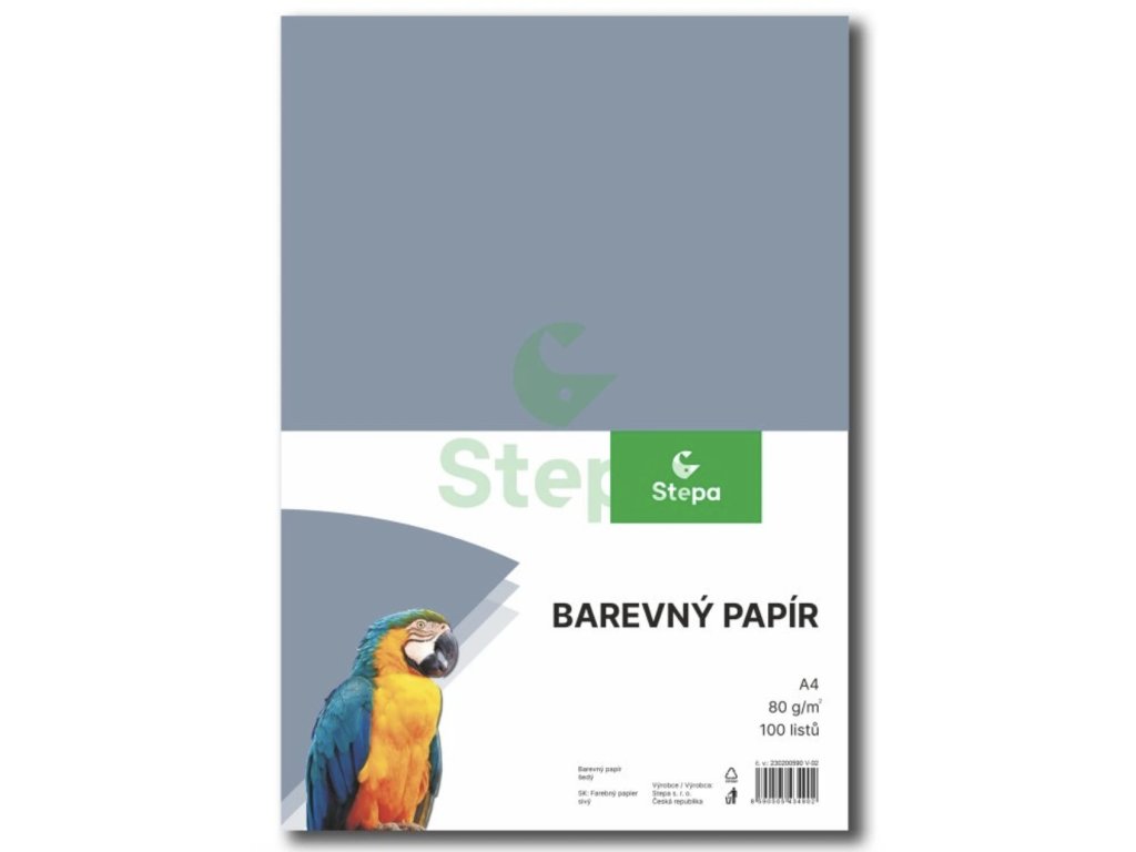 Barevný papír - šedý, A4, 80g (100 listů)