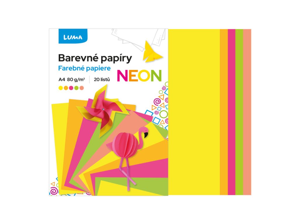 vhodné pro stříhání, lepení a skládání, v balení: 20ks, formát: A4, gramáž: 70g/m², 4x5 neonových barevDoplňkové parametry