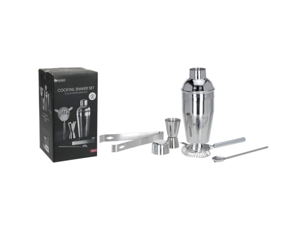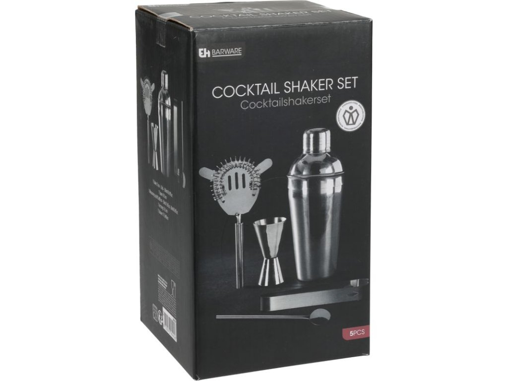 - kompletní barmanský set v nerezovém provedení- materiál: nerezová ocel- kvalitní provedení, dlouhá životnost- jednoduchá údržba, vhodné do myčky nádobí- kompletní sada 5 ks obsahuje:- 1x shaker na koktejly s víčkem: objem 0.5 l / výška 22 cm- 1x sítko pro cezení přímo ze shakeru - 1x míchací lžíce 19 cm- 1x oboustranná odměrka 8,5 x 5 cm- 1x kleště na led či ovoce 16,5 cmDoplňkové parametry
