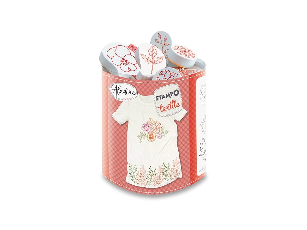Razítka jsou určena především na potisk textilu, ale při omytí razítka a použití jiného razítkovacího polštářku je můžete využít při každém tvoření, ať už vytváříte, scrapbookové projekty, cestovní deníky, alba pro vaše děti nebo jen tvoříte přáníčka nebo jiné výrobky z papíru. Razítka můžete také zakomponovat do textu nebo jimi text nahradit., Velké množství razítek v jedné sadě vám umožní vytvořit vždy originální výrobek. Díky hluboké textuře se razítka hodí i do polymerových hmot., TIP: K razítkům Stampo Textile byste mohli využít barevné razítkové polštářky na textil i barevné razítkové polštářky s barvou na papír., Kreativní razítka AladinE jsou výbornými pomocníky nejen na textil a papír, ale i pro dekorace na dřevo, polymer či modelovací hmotu. Prohlédněte si je >>Doplňkové parametry