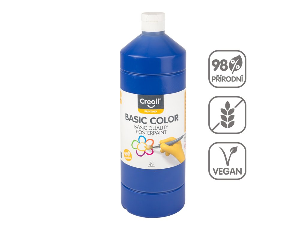 Kvalitní a vysoce krycí, vodou ředitelná barva. Obal s praktickým víčkem, zabraňující vysychání zároveň poskytuje snadnou manipulaci. Vhodná pro školy a výtvarné kroužky.Doplňkové parametry