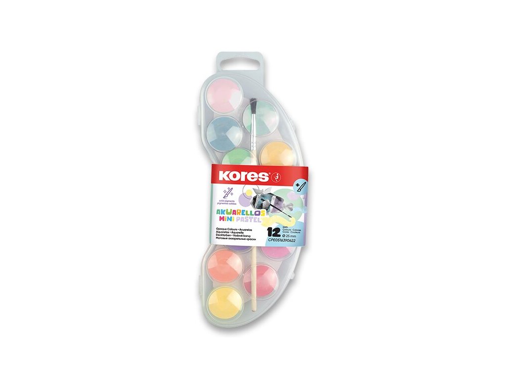 Vodové barvy Kores Akuarellas Mini - 12 pastelových barev, průměr 25 mm