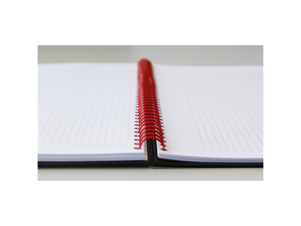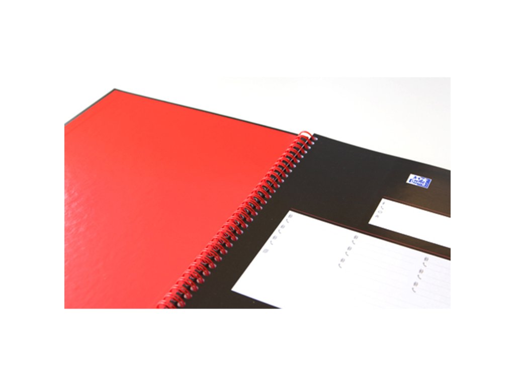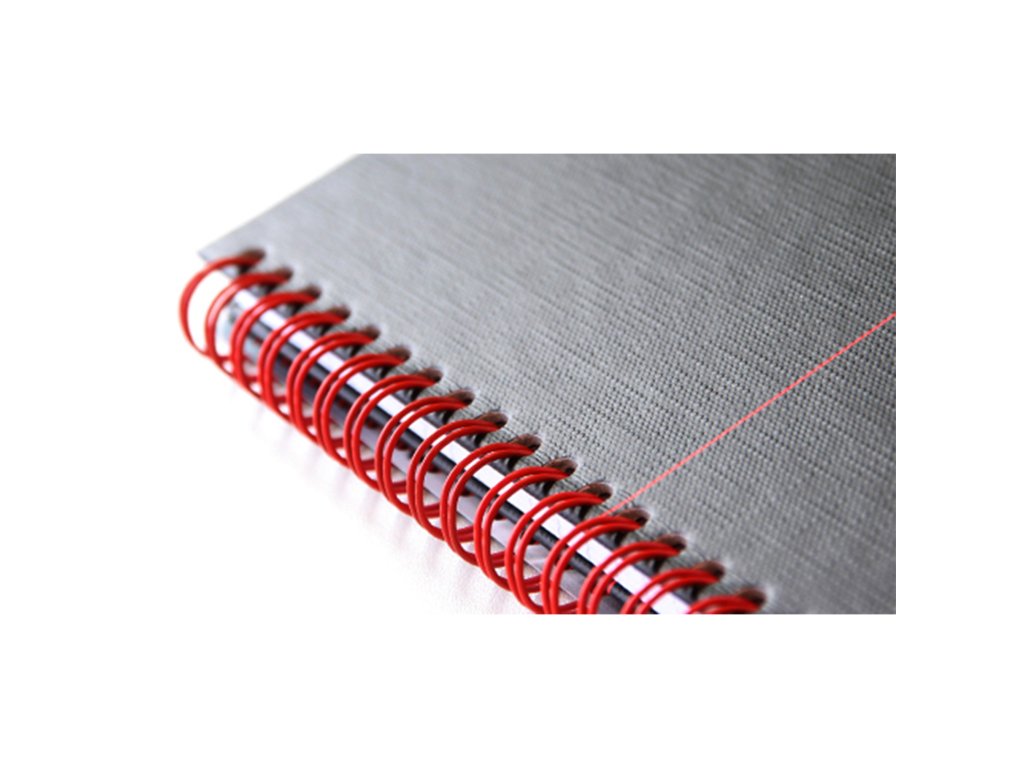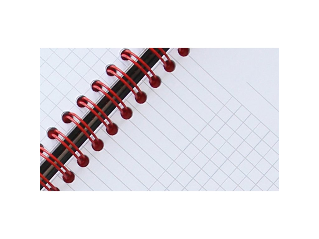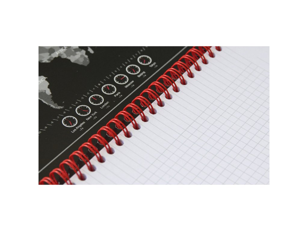 Desky z tvrdé, odolné lepenky s texturovaným povrchem; Dvojitá drátová vazba zajišťuje otevírání stránek o 360°; Extra jemný a hladký papír Optik paper gramáže 90 g/m² - nedochází k prolínání inkoustu na druhou stránku; Záhlaví a levý okraj; Možnost naskenování pomocí aplikace Scribzee; Černo-červené provedeníDoplňkové parametry