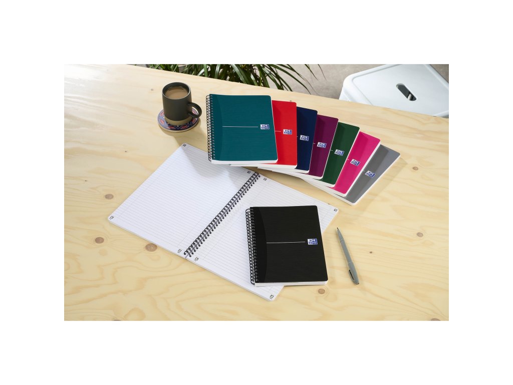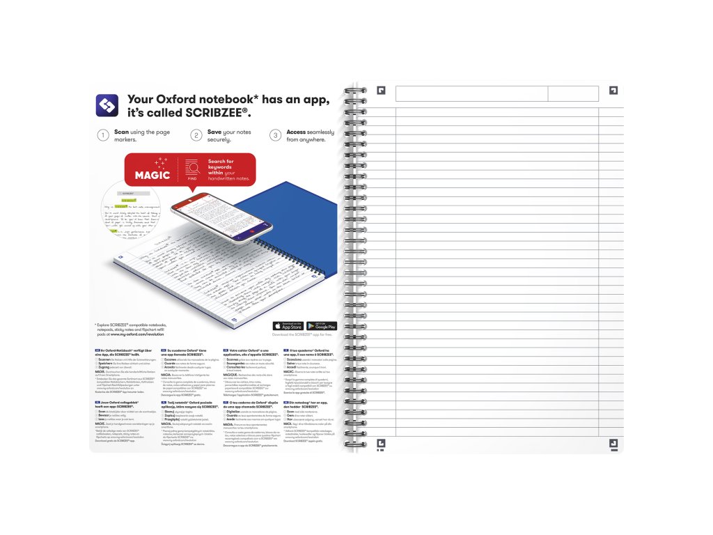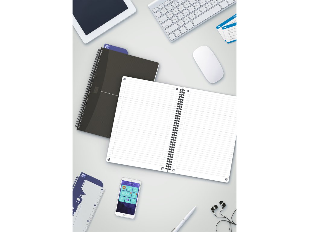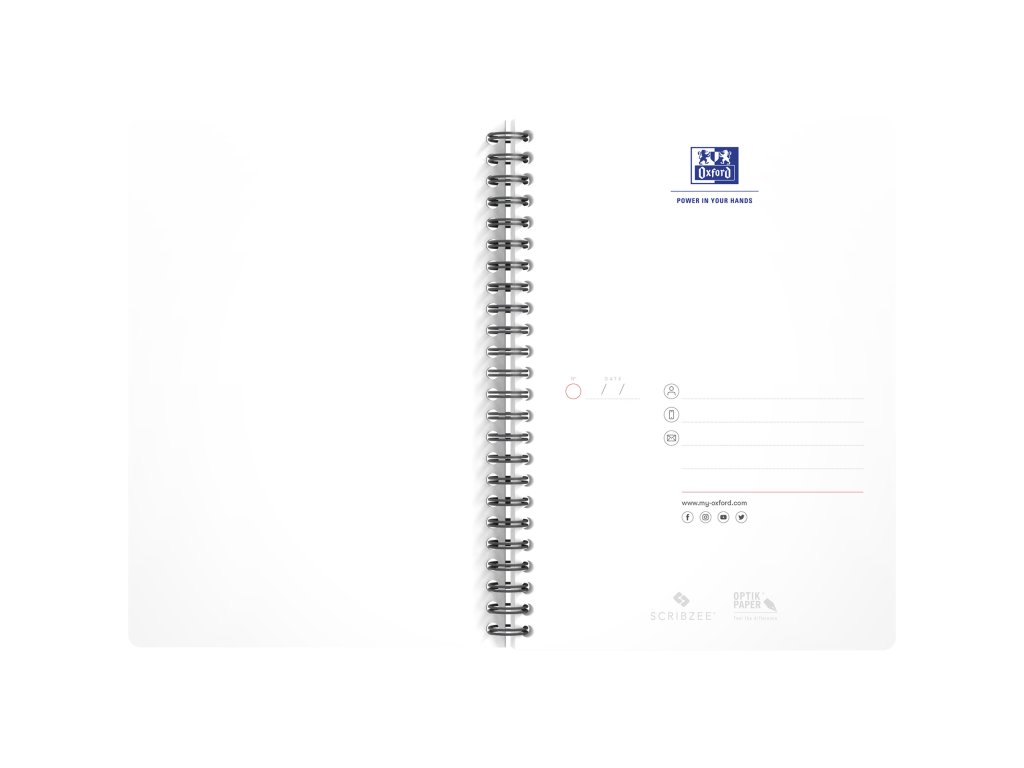 Desky z měkkého, odolného laminovaného kartonu; Dvojitá drátová vazba zajišťuje otevírání stránek o 360°; Extra jemný a hladký papír Optik paper gramáže 90 g/m² - nedochází k prolínání inkoustu na druhou stránku; Záložka a pravítko v jednom; Záhlaví stránky pro předmět či datum; Vnější a vnitřní okraje; Možnost naskenování pomocí aplikace Scribzee; Barevný assortDoplňkové parametry