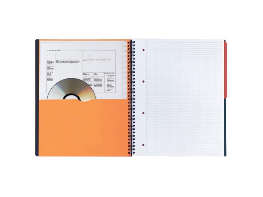 Desky z vysoce odolného polypropylenu; Dvojitá drátová vazba zajišťuje otevírání stránek o 360°; Extra jemný a hladký papír Optik paper gramáže 80 g/m2; Listy s perforací a děrováním pro snadné odtržení a archivaci; Rozdělovník z PP sloužící také jako záložka; Záhlaví a levý okraj; Úvodní strana s informacemi o časových pásmech, tel. předvolbách a hlavních městech; Vnitřní kartonová kapsa; Možnost naskenování pomocí aplikace ScribzeeDalší vlastnosti
