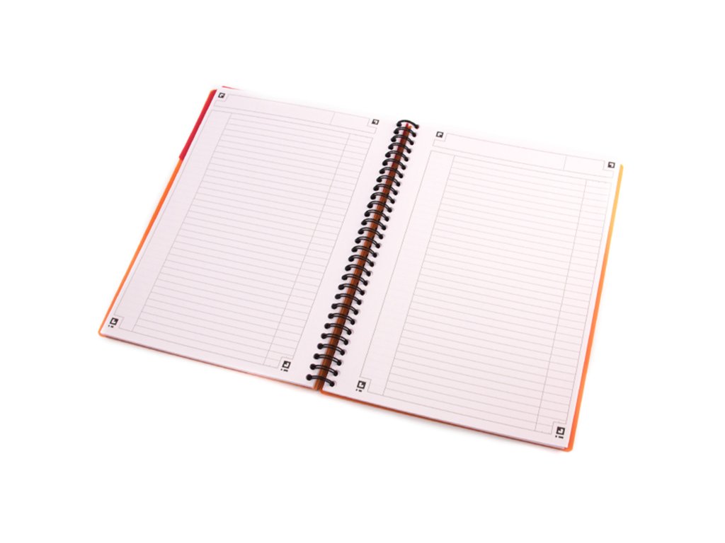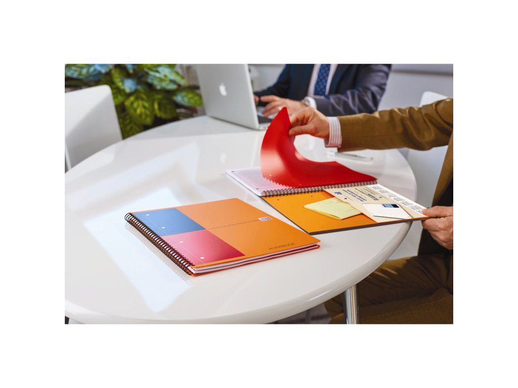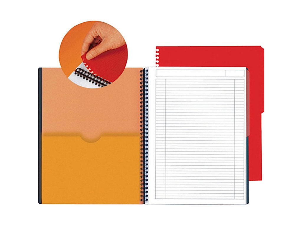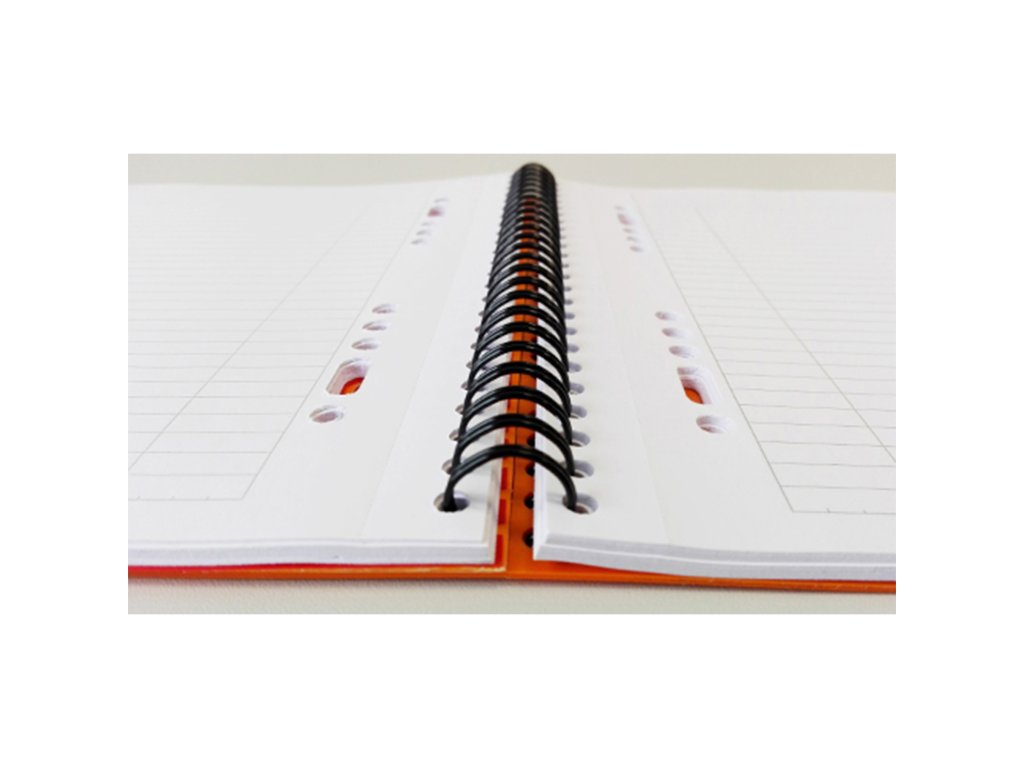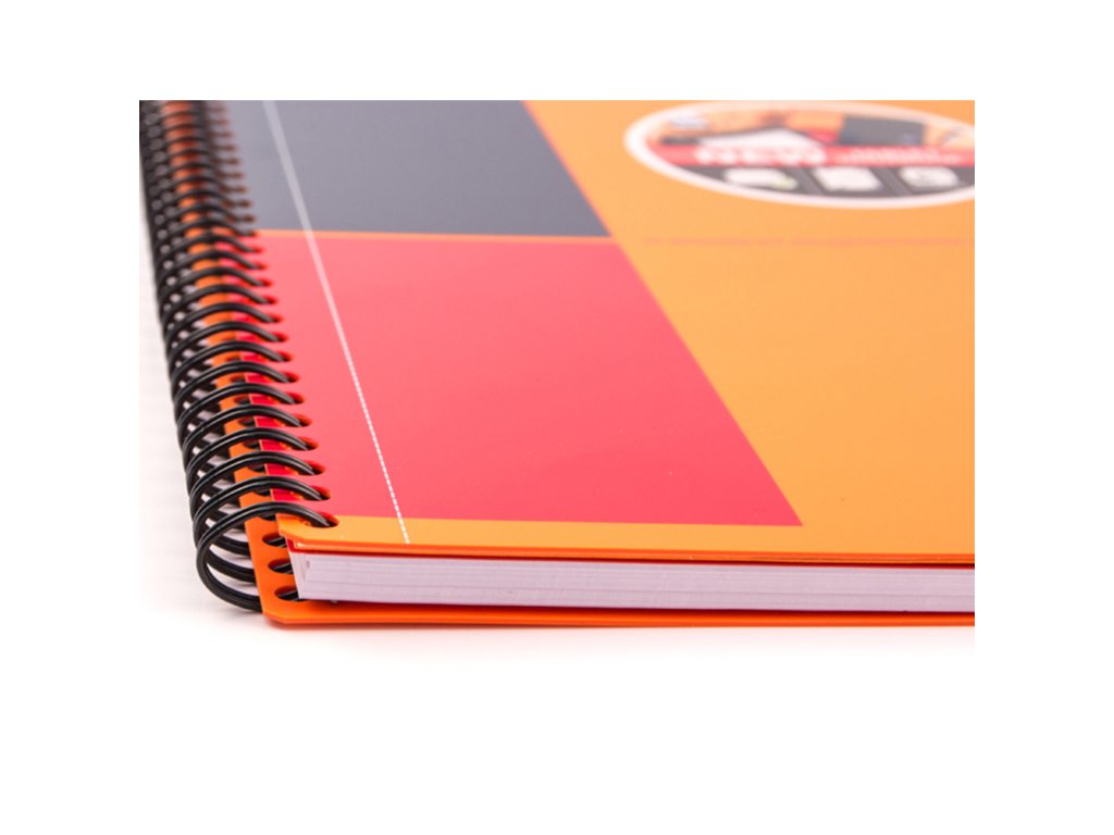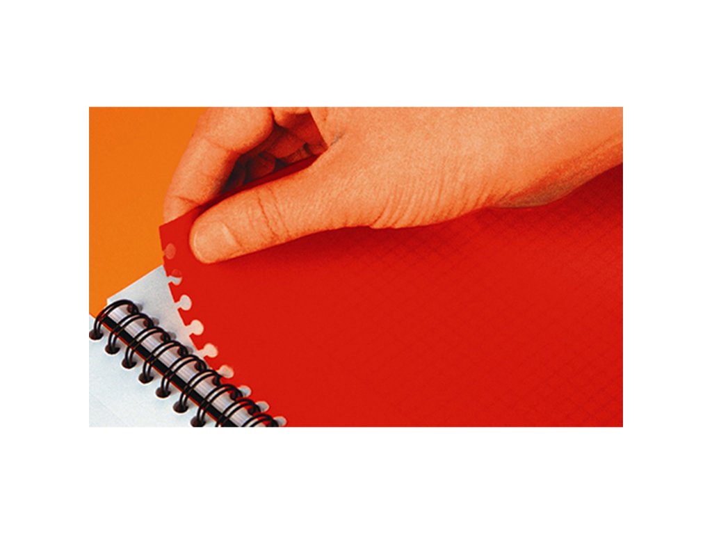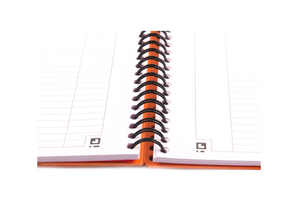 Desky z vysoce odolného polypropylenu; Dvojitá drátová vazba zajišťuje otevírání stránek o 360°; Extra jemný a hladký papír Optik paper gramáže 80 g/m2; Listy s perforací a děrováním pro snadné odtržení a archivaci; Rozdělovník z PP sloužící také jako záložka; Linkování 6 mm se záhlavím, dvojitými okraji a místem pro datum; Úvodní strana s informacemi o časových pásmech, tel. předvolbách a hlavních městech; Vnitřní kartonová kapsa; Možnost naskenování pomocí aplikace ScribzeeDalší vlastnosti