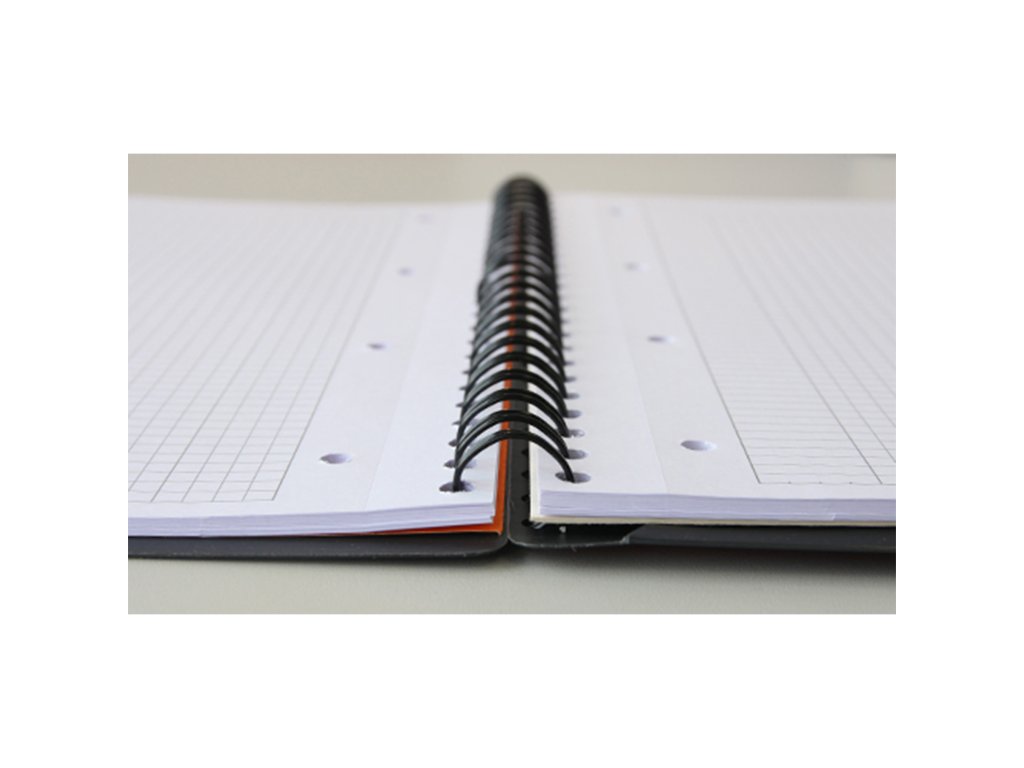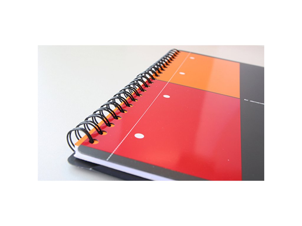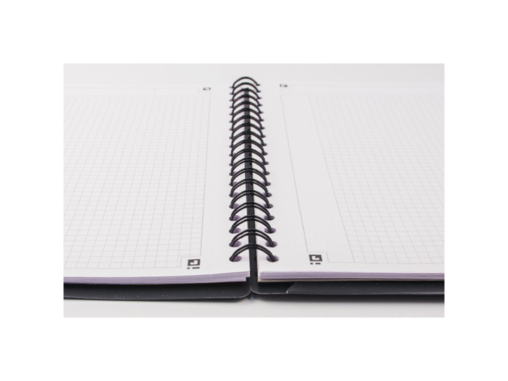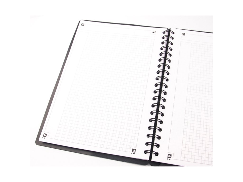 Desky z vysoce odolného polypropylenu; Dvojitá drátová vazba zajišťuje otevírání stránek o 360°; Extra jemný a hladký papír Optik paper gramáže 80 g/m2; Vložený pevný karton pro lepší oporu při psaní; Listy s perforací a děrováním pro snadné odtržení a archivaci; Záhlaví a levý okraj; Trojchlopňové desky na zadní straně; Zavírání na gumičku; Možnost naskenování pomocí aplikace ScribzeeDoplňkové parametry