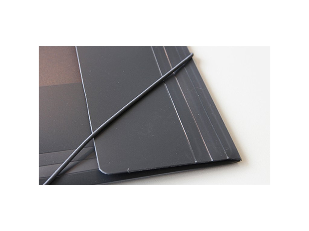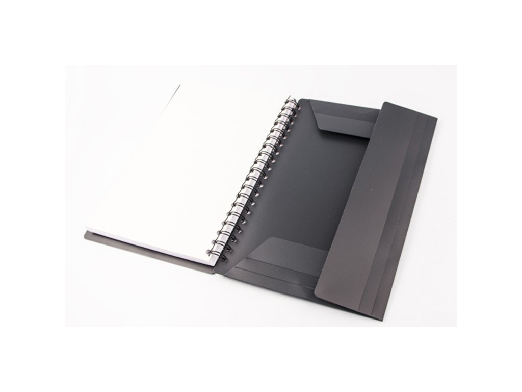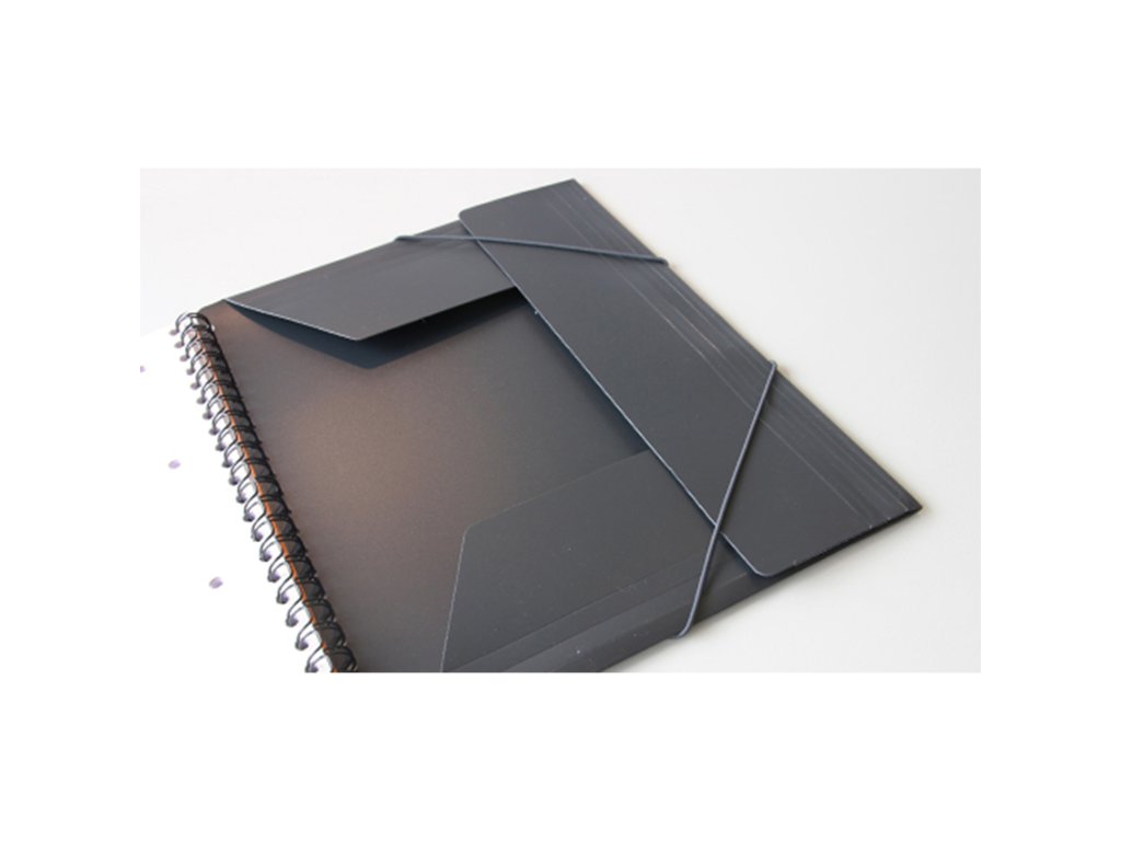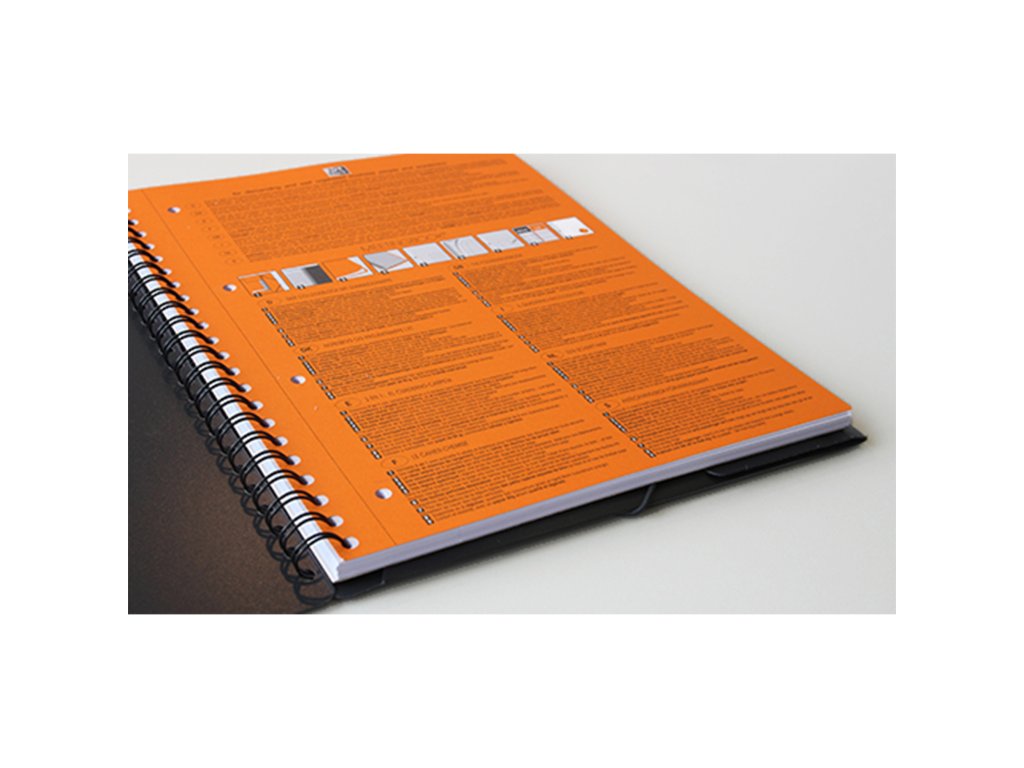 Desky z vysoce odolného polypropylenu; Dvojitá drátová vazba zajišťuje otevírání stránek o 360°; Extra jemný a hladký papír Optik paper gramáže 80 g/m2; Vložený pevný karton pro lepší oporu při psaní; Listy s perforací a děrováním pro snadné odtržení a archivaci; Záhlaví a levý okraj; Trojchlopňové desky na zadní straně; Zavírání na gumičku; Možnost naskenování pomocí aplikace ScribzeeDoplňkové parametry