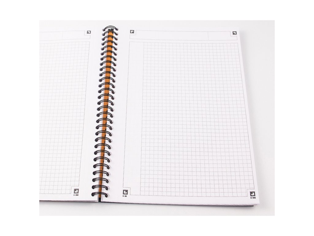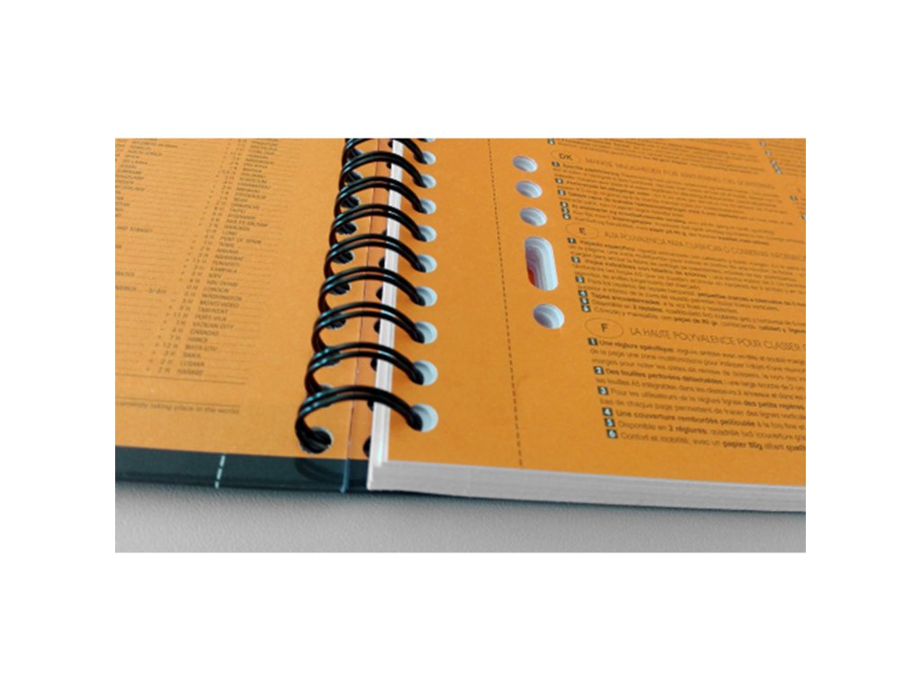 Desky z tvrdého, odolného laminovaného kartonu; Dvojitá drátová vazba zajišťuje otevírání stránek o 360°; Extra jemný a hladký papír Optik paper gramáže 80 g/m2; Listy s perforací a děrováním pro snadné odtržení a archivaci; Úvodní strana s informacemi o časových pásmech, tel. předvolbách a hlavních městech; Záhlaví a levý okraj; Možnost naskenování pomocí aplikace ScribzeeDoplňkové parametry