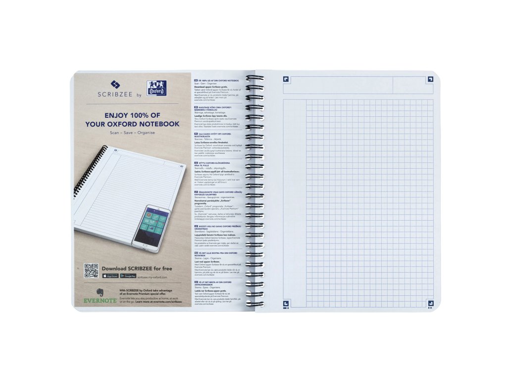 Odolné, ohebné desky z kartonu s příjemným jemným hladkým povrchem "Soft Touch"; Dvojitá drátová vazba zajišťuje otevírání stránek o 360°; Extra jemný a hladký papír Optik paper gramáže 90 g/m² - nedochází k prolínání inkoustu na druhou stránku; Mikroperforace; Záhlaví a levý okraj; Zaoblené rohy; Možnost naskenování pomocí aplikace ScribzeeDoplňkové parametry