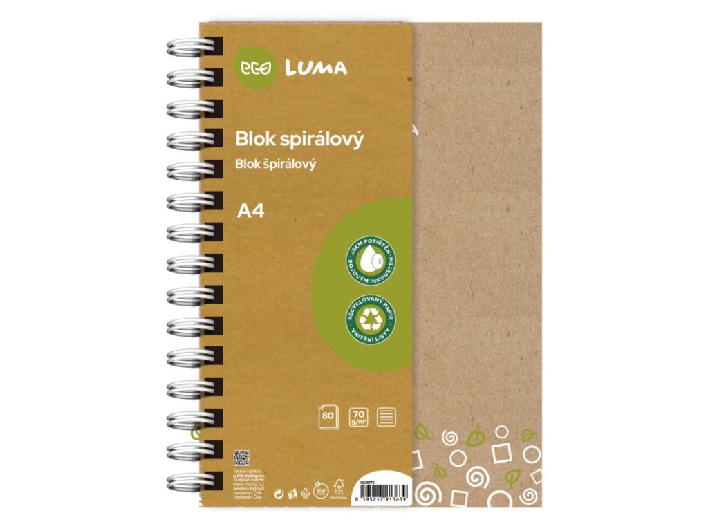 praktický blok s listy z recyklovaného papíru, s certifikací FSC, linkovaný, 80 listů, papír 70 g potištěný sójovým inkoustemDoplňkové parametry
