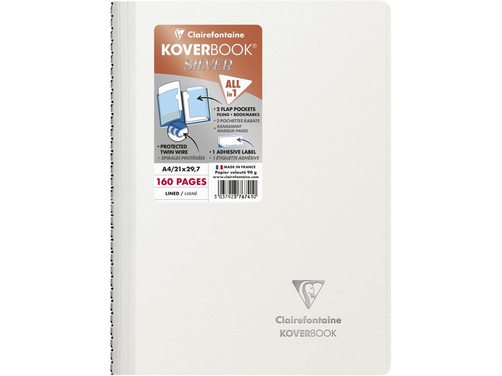 Clairefontaine, Zápisník Koverbook, A4, linkovaný, 80 listů, silver