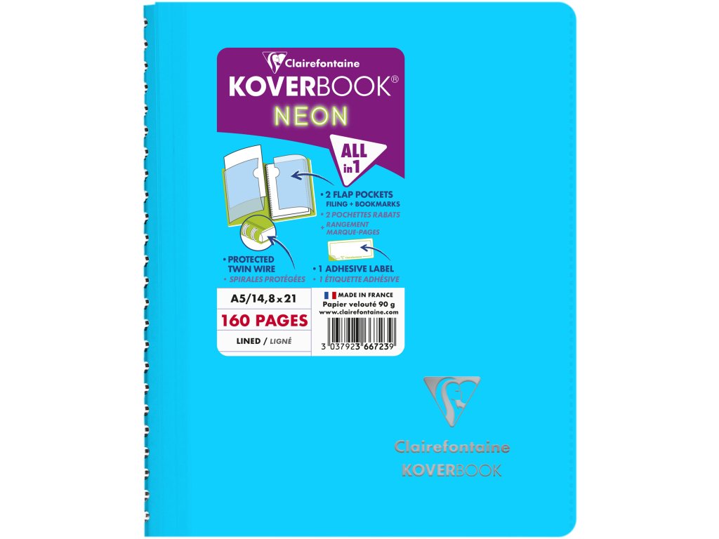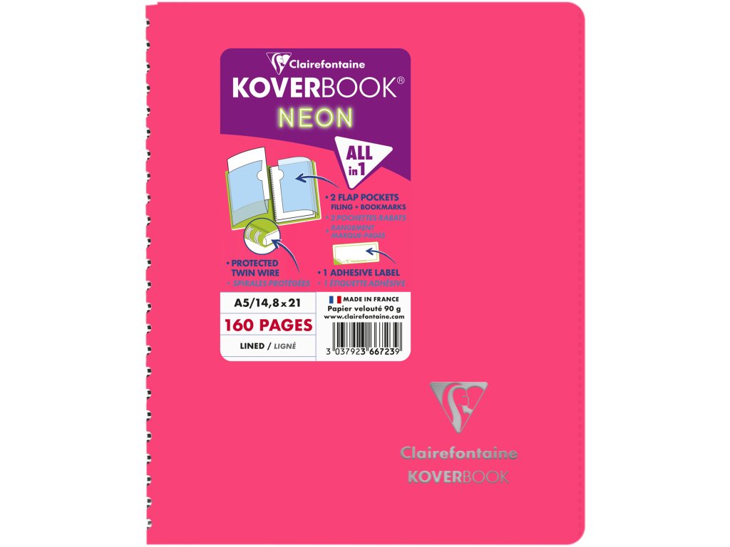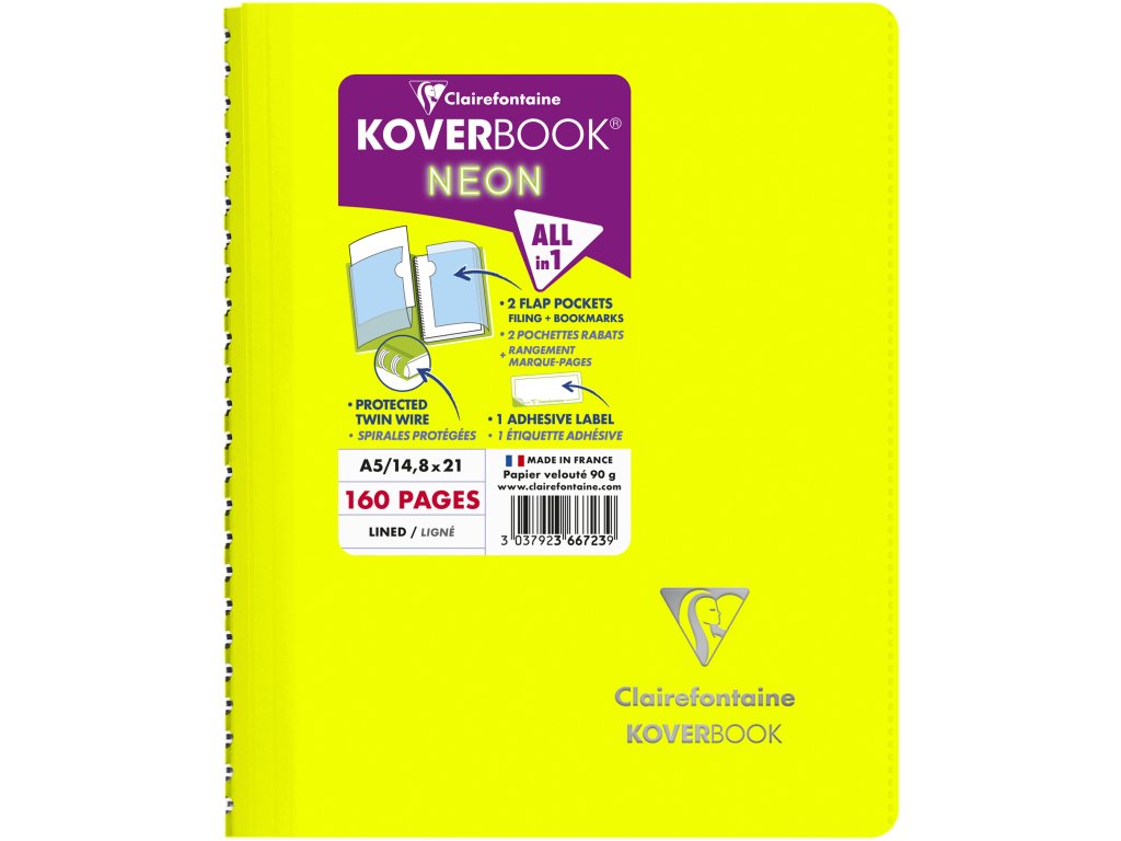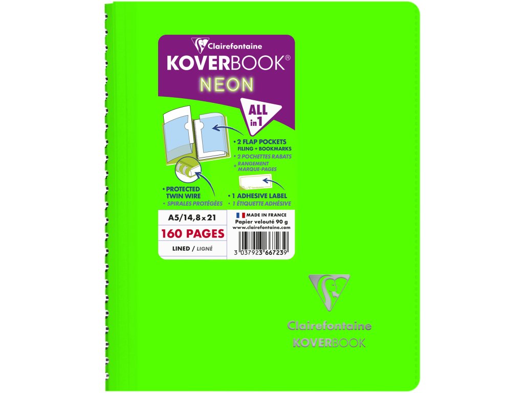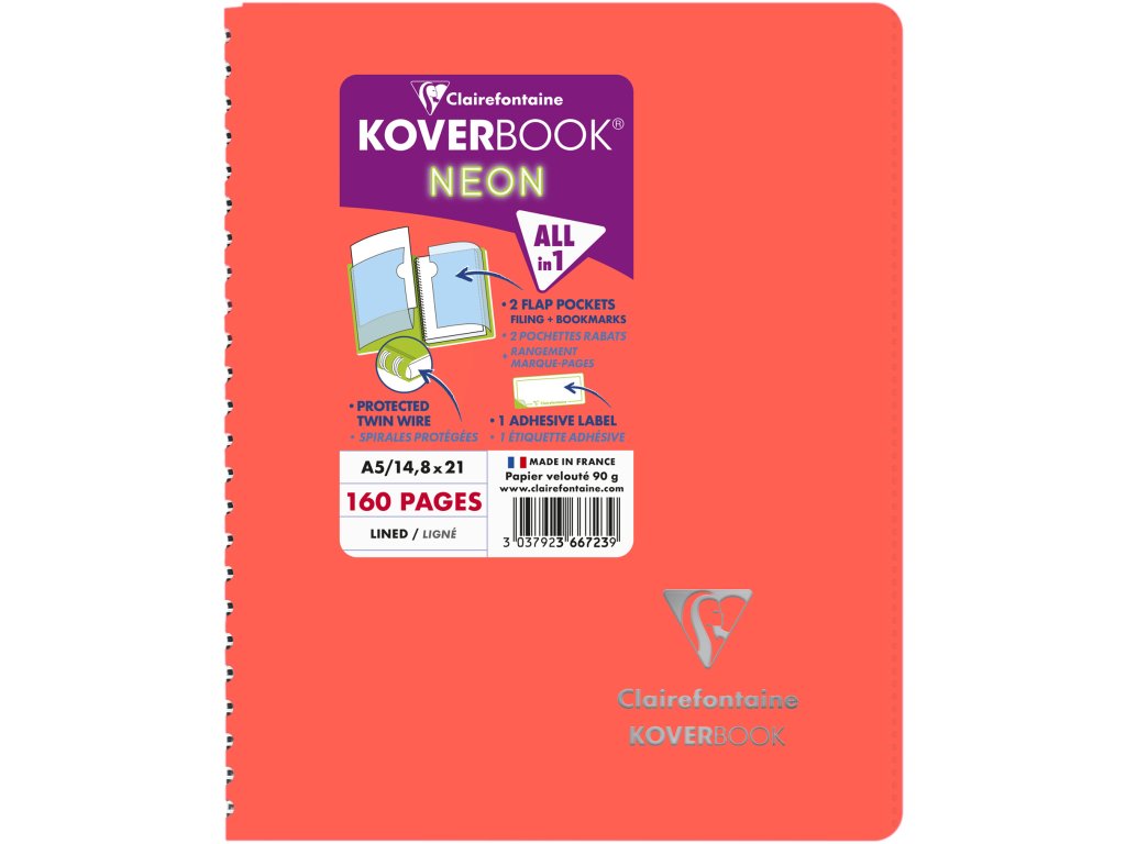 Clairefontaine, Zápisník Koverbook, A5, linkovaný, 80 listů, neon