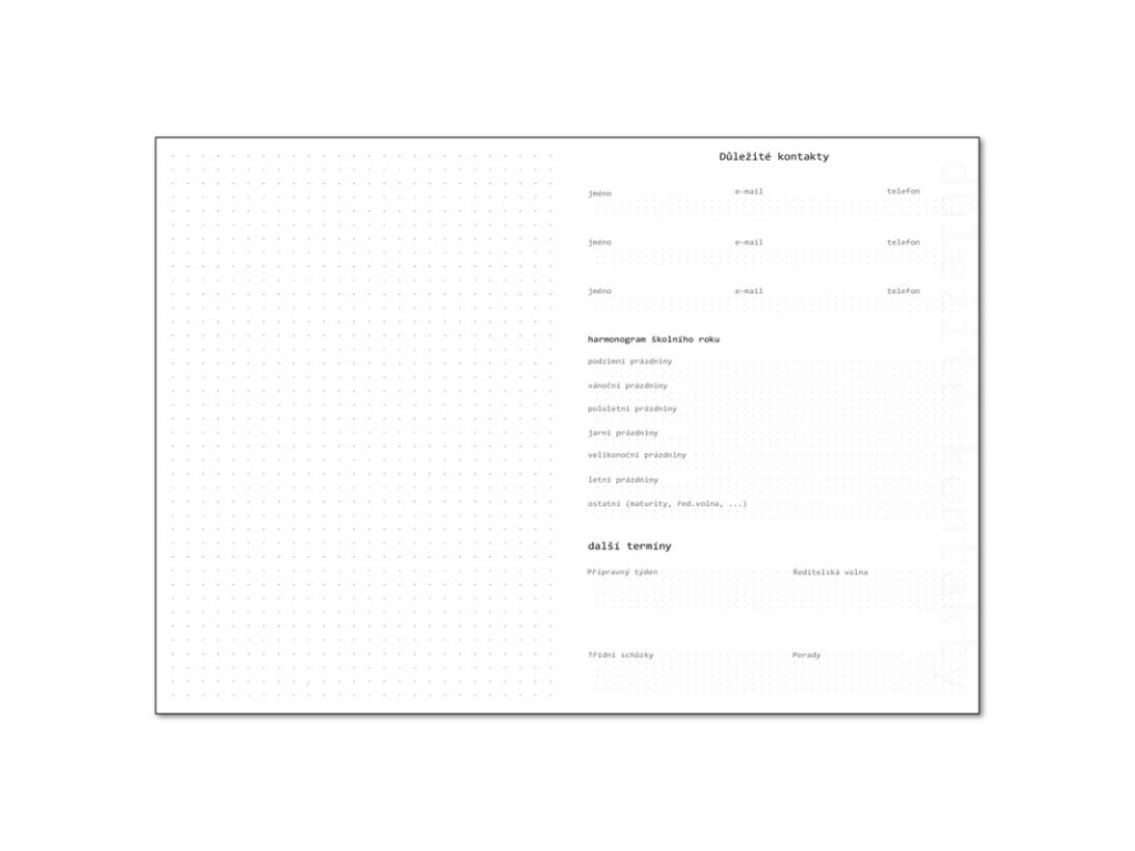Učitelký zápisník A6 nabízí 80 listů bezdřevého papíru se speciální lineaturou, která učitelům a učitelkám umožňuje dotvořit stránky podle vlastních potřeb. Nabízí prostor pro průběžnou klasifikaci žáků a studentů a najdete v něm i místo na vlastní poznámky. Šitá vazba V8 s pevnými laminovanými deskami udrží vaše zápisky pohromadě a v bezpečí.Doplňkové parametry