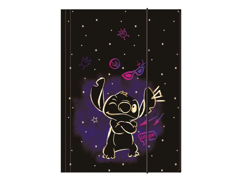 Školní desky s fixační kulatou gumičkou v oblíbeném motivu veselého Stitche. Kontrastní barva a tištěný motiv uvnitř desek.Vhodné do škol nebo odpoledních kroužků pro přenos sešitů nebo jiných dokumentů.Doplňkové parametry