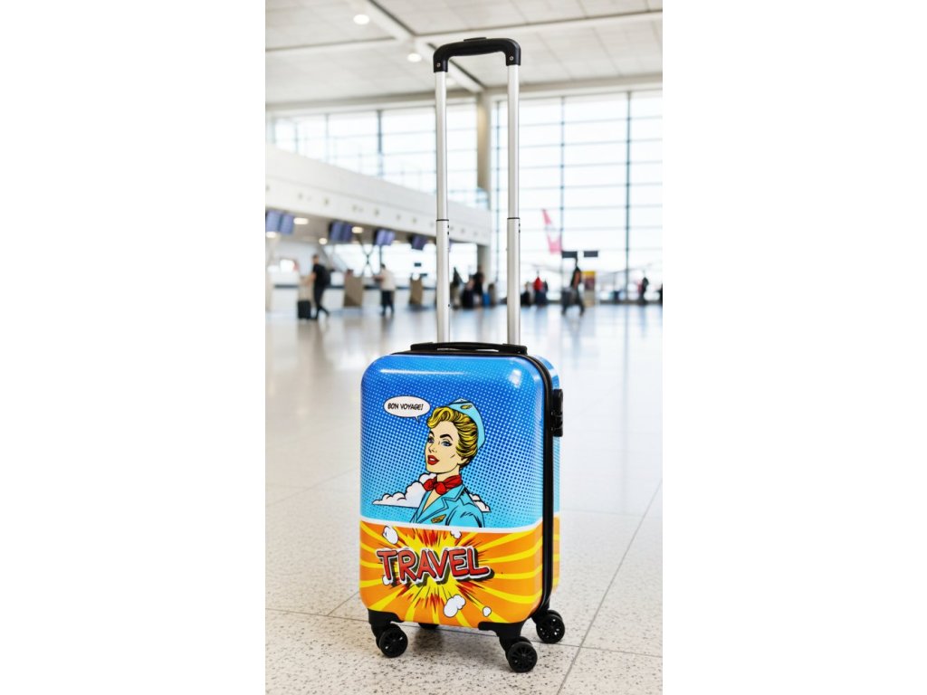 - odolný cestovní kufr na kolečkách v retro designu- materiál: tvrzený ABS plast- kvalitní pevný materiál s dobrou odolností proti poškrábání- teleskopická rukojeť- v horní části také sklopné madlo pro ruční přenášení- hlavní velká kapsa na dvojcestný zip se zámkem- bezpečné uzamčení pomocí zámku na číselný kód- vnitřní prostor kufru je vybaven elastickými pásy k připevnění obsahu- samozřejmostí jsou 4 kolečka otočná o 360°- skořepinový kufr z tvrzeného ABS plastu výborně odolává případným pádům na zem nebo větší zátěži- odpovídá definici příručního zavazadla a lze si jej vzít na palubu letadla u většiny leteckých společností (zkontrolujte rozměry)- celkové rozměry i s kolečky: 32,5 x 21 x 51 cm- objem kufru: 27 litrů- nízká váha pouze 2,3 kg- barva: modrá / oranžová- značka: Excellent Houseware.Doplňkové parametry