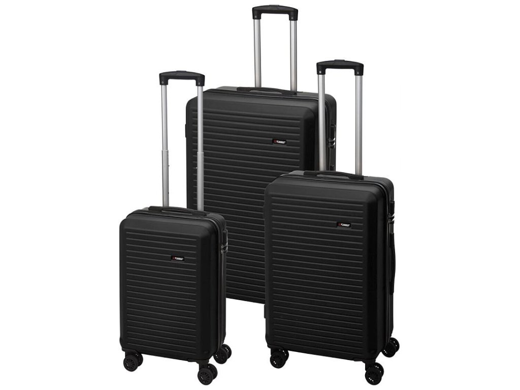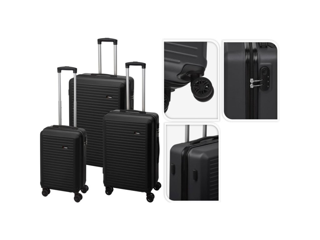 Sada 3 cestovních kufrů v elegantní černé barvě – ideální společníci na každé vaše dobrodružství. Pevné, lehké a praktické kufry z odolného ABS materiálu s moderním designem a všemi funkcemi, které usnadní vaše cestování.