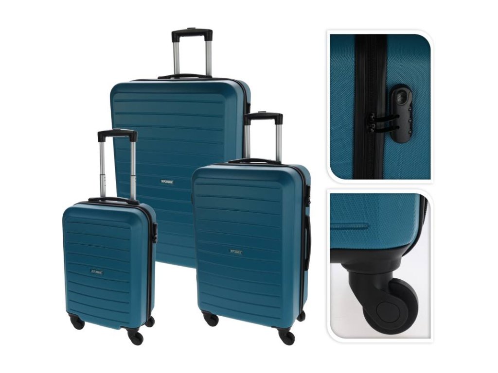PROWORLD Sada plastových cestovních kufrů 3 ks 50 / 60 / 70 cm petrolejová KO-FB5000460