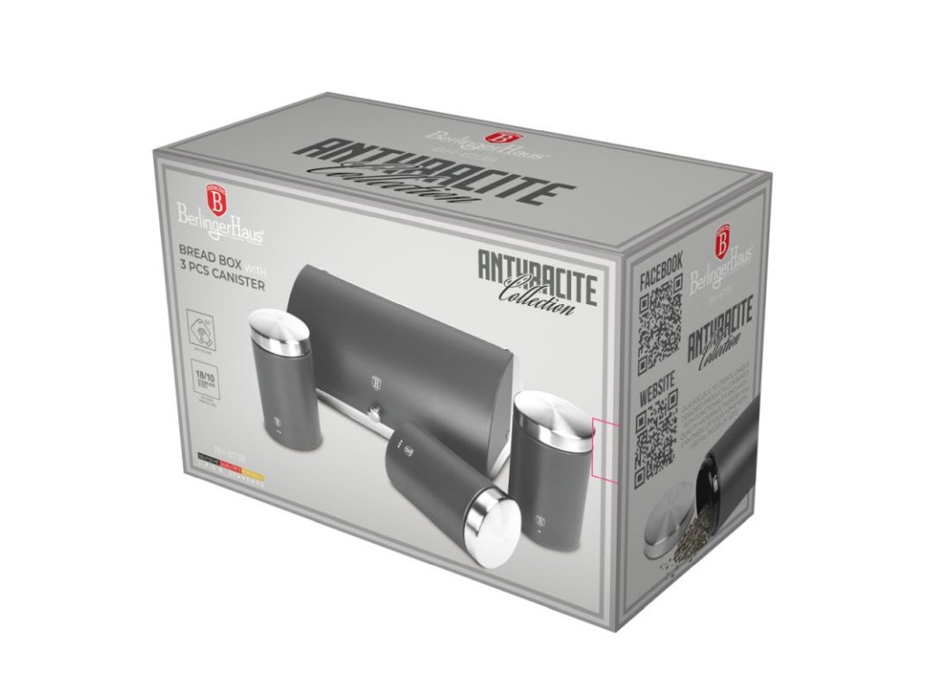 BERLINGERHAUS Chlebník a sada dóz na potraviny 4 ks Antracit Collection BH-6738