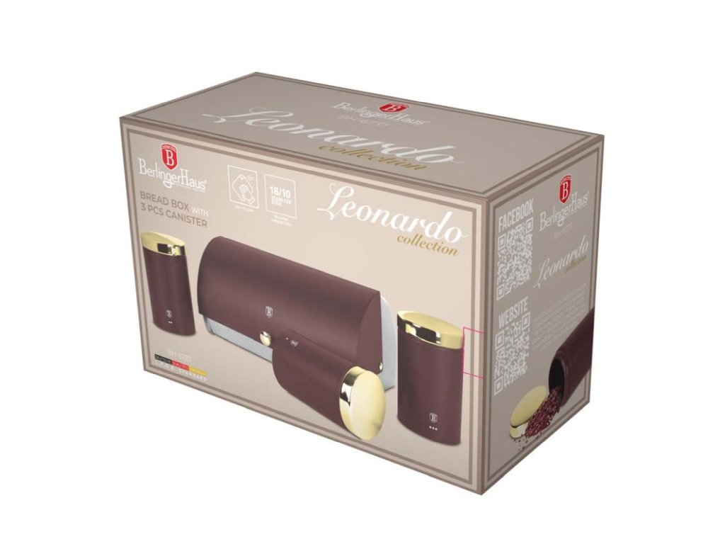 BERLINGERHAUS Chlebník a sada dóz na potraviny 4 ks Leonardo Collection BH-6737