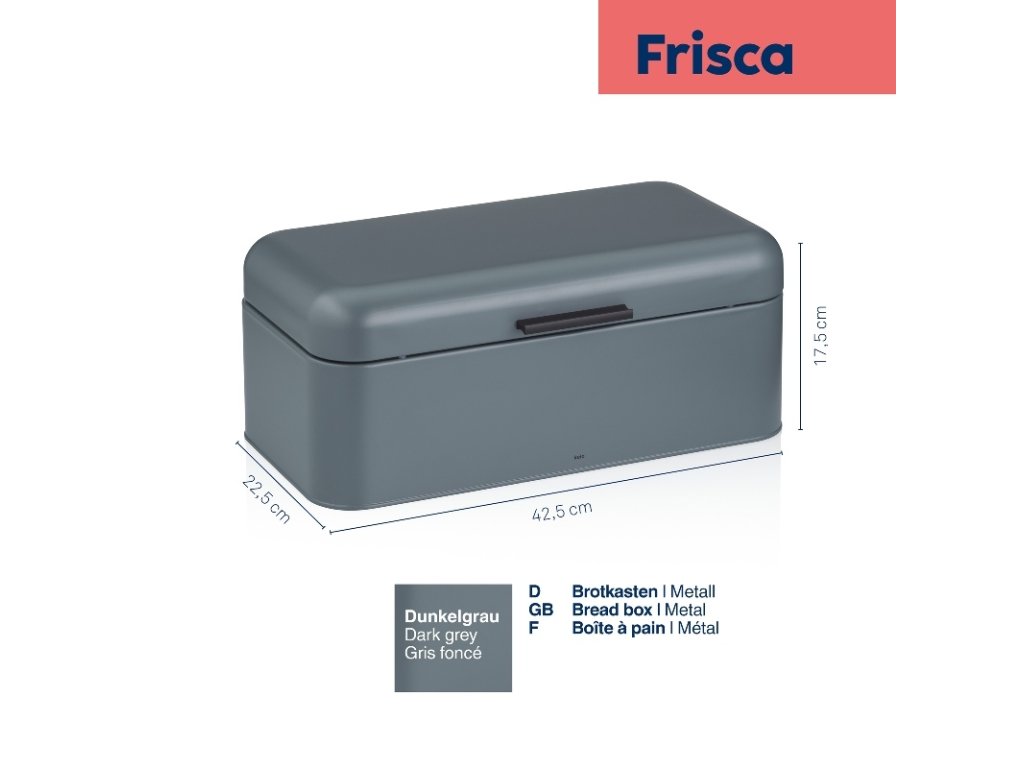 Váš stylový společník do kuchyně – chlebník Frisca přináší nejen funkčnost, ale i elegantní vzhled, který vdechne vaší kuchyni moderní nádech. Díky chytrému designu a šedé barvě perfektně zapadne do každého interiéru. Praktické větrací otvory na zadní straně zajišťují ideální cirkulaci vzduchu, takže váš chléb zůstane déle čerstvý a chutný.