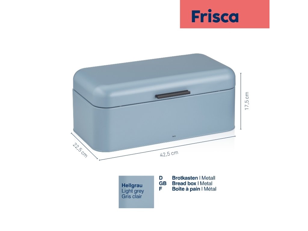 Váš stylový společník do kuchyně – chlebník Frisca přináší nejen funkčnost, ale i elegantní vzhled, který vdechne vaší kuchyni moderní nádech. Díky chytrému designu a světle modé barvě perfektně zapadne do každého interiéru. Praktické větrací otvory na zadní straně zajišťují ideální cirkulaci vzduchu, takže váš chléb zůstane déle čerstvý a chutný.