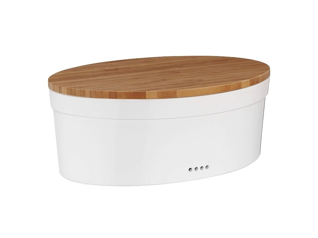 - kvalitně zpracovaný chlebník v tradičním designu z bílé keramiky- materiál: keramika / bambus- lesklý glazovaný povrch- bambusové víko lze po otočení použít jako prkénko pro krájení pečiva- odvětrávací otvory prodlužují čerstvost, zabraňují vzniku vlhkosti- rozměry: 36,5 x 23,5 x výška 14 cm- vhodná do myčky nádobí bez víka- značka: KELADoplňkové parametry