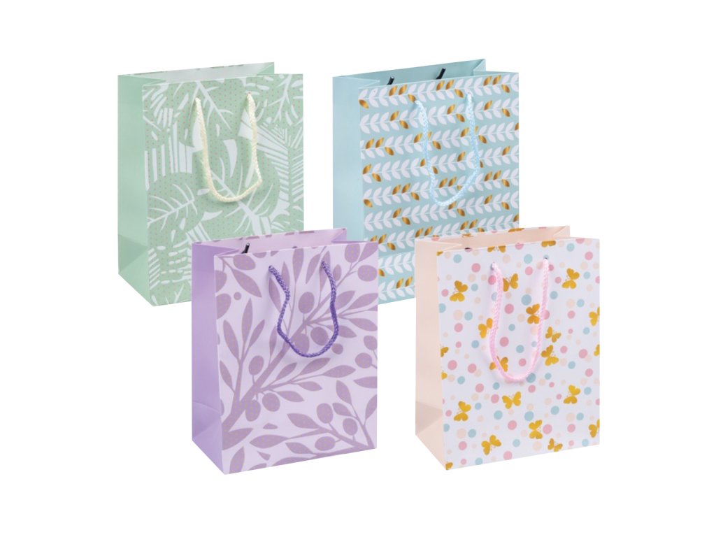 Sada kvalitních dárkových tašek, vhodná na většinu slavnostních příležitostí. Laminovaný lesklý povrch je odolný proti oděru a poškození. Jemné pastelové barvy doplněné o decentní motivy. Barevně sladěná šňůrka je pevná a odolná a zajišťuje snadné uchopení a přenos.Doplňkové parametry