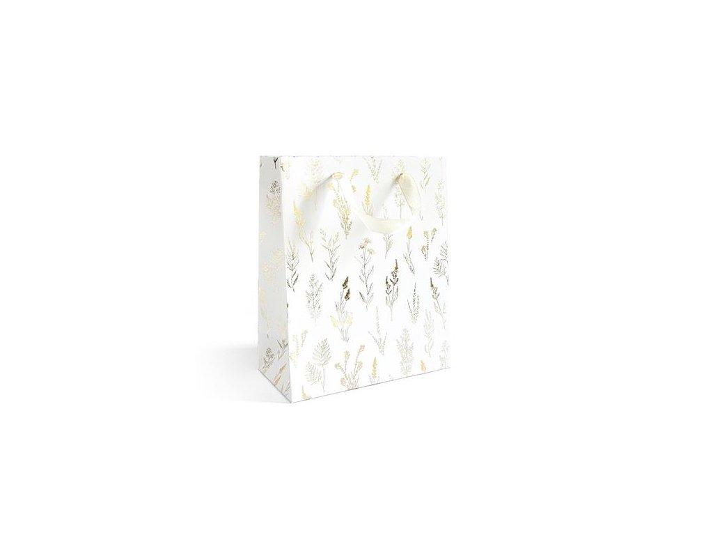 Papírová taška bílá 25x10x20cm, zlatý potisk, 5ks