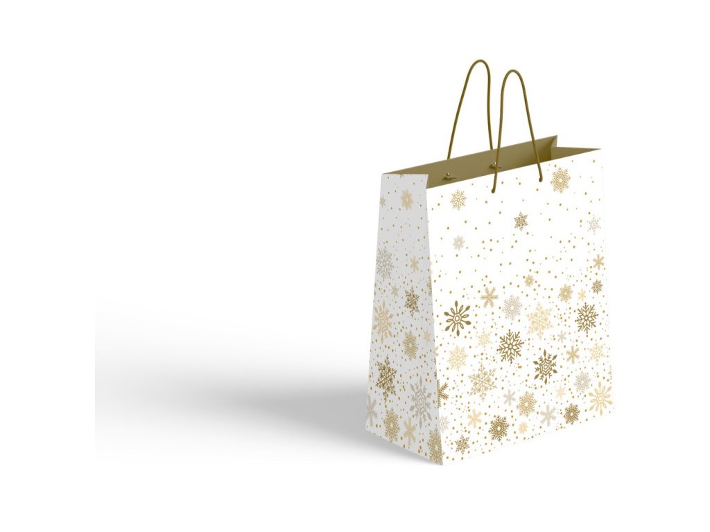 Taška dárková 260x120x320 mm Vločky bílá zlatá