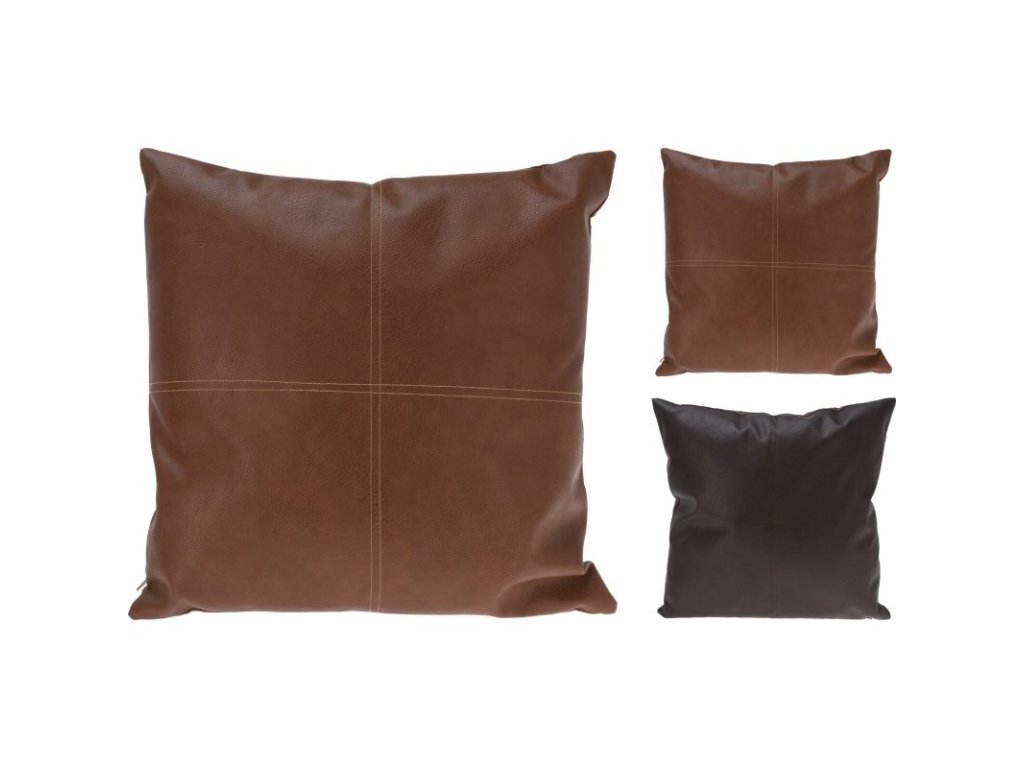HOMESTYLING Polštář dekorační PU kůže 45 x 45 cm tmavě hnědá KO-AAE821870tmhn