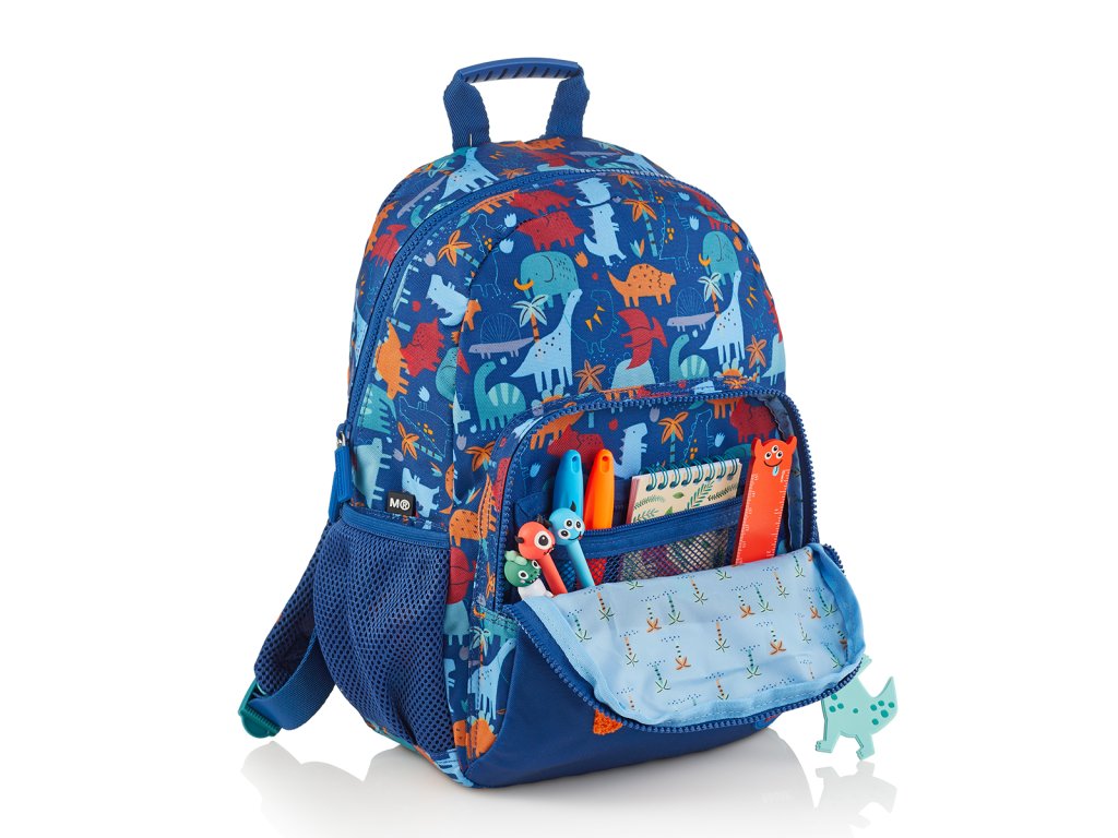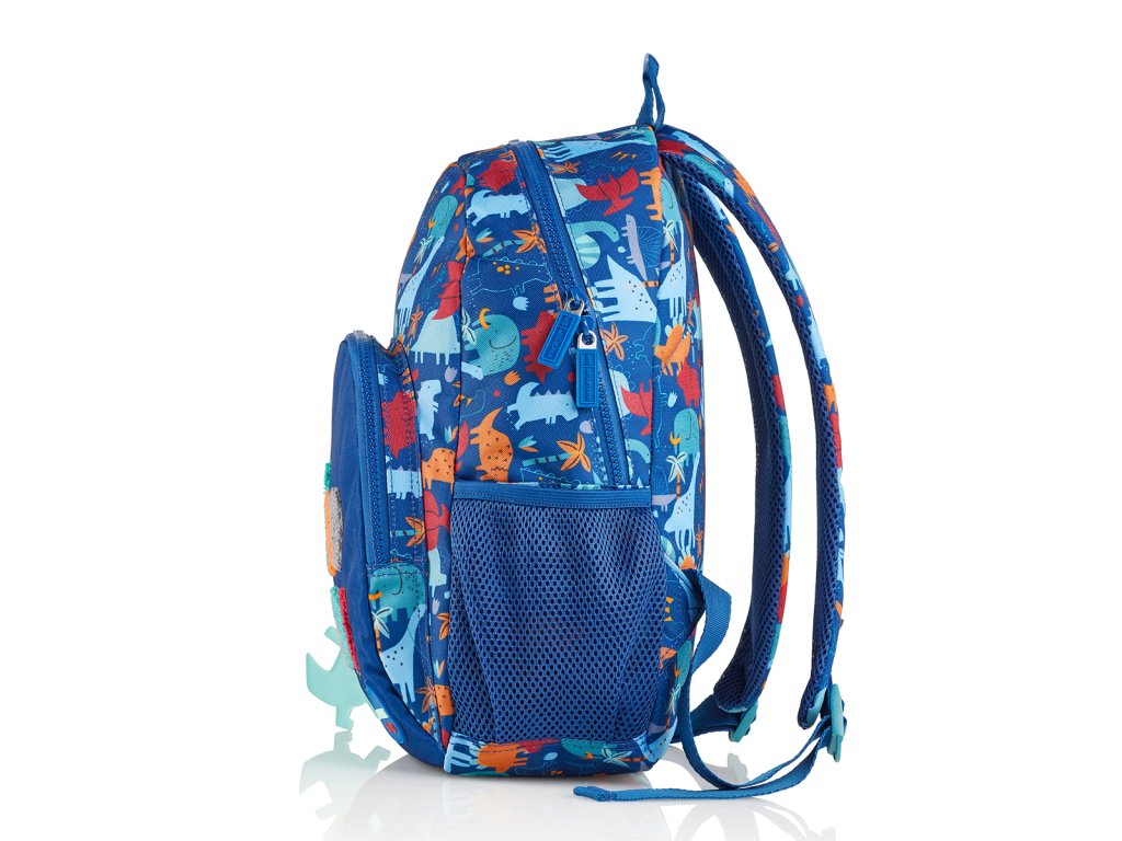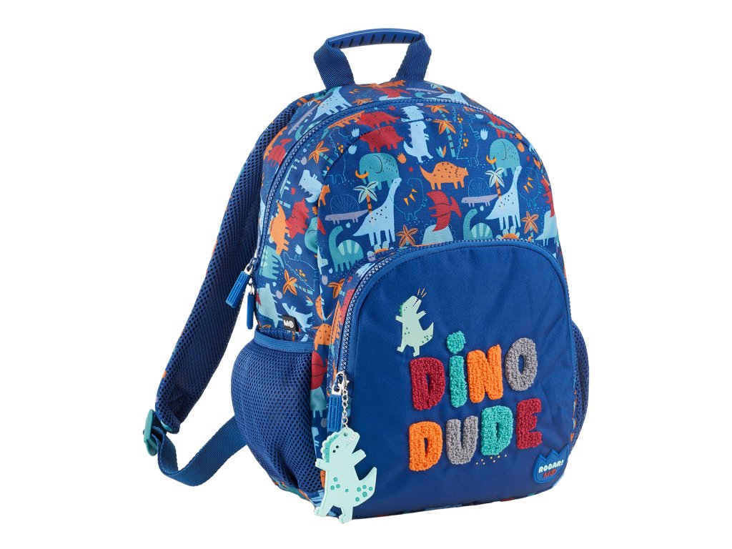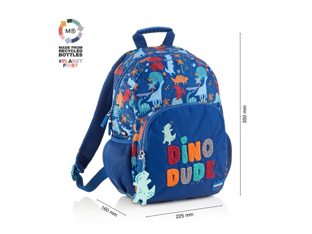 Lehký veselý batůžek s klíčenkou a roztomilým motivem dinosaura. Polstrovaná záda vč. popruhů pro pohodlné nošení během celého dne. Dvě postranní otevřené kapsy jsou ideální pro umístění láhve nebo jiných drobností.Doplňkové parametry