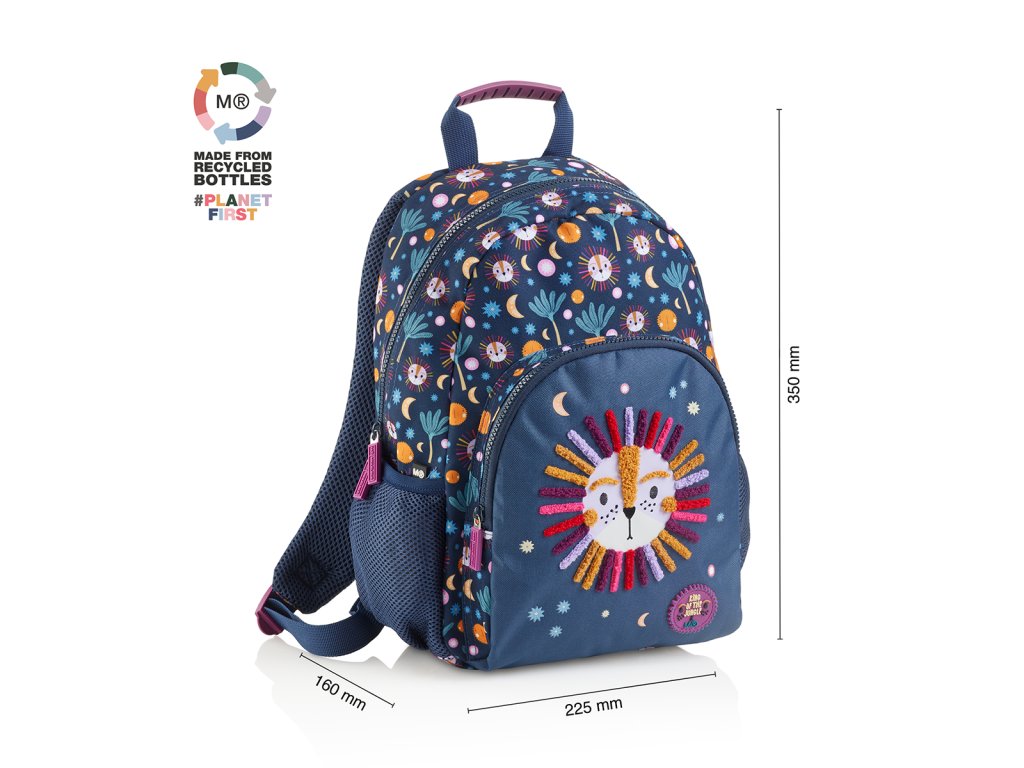 Lehký, veselý batůžek vhodný na výlety nebo odpolední aktivity malých dětí. Praktické dělení na dvě kapsy, pomáhá zpřehlednit vše důležité uvnitř. Odolný materiál batůžku prodlužuje jeho životnost.Doplňkové parametry