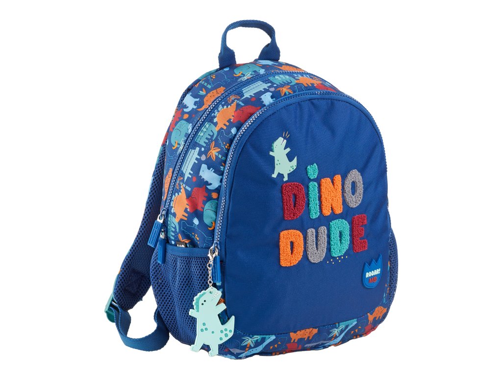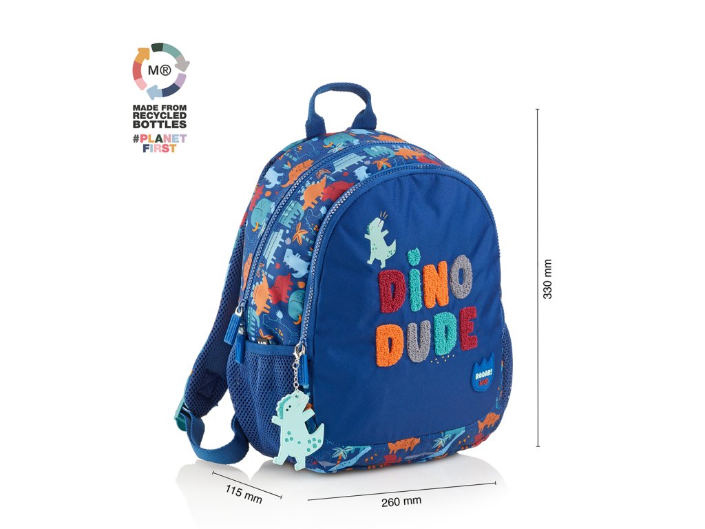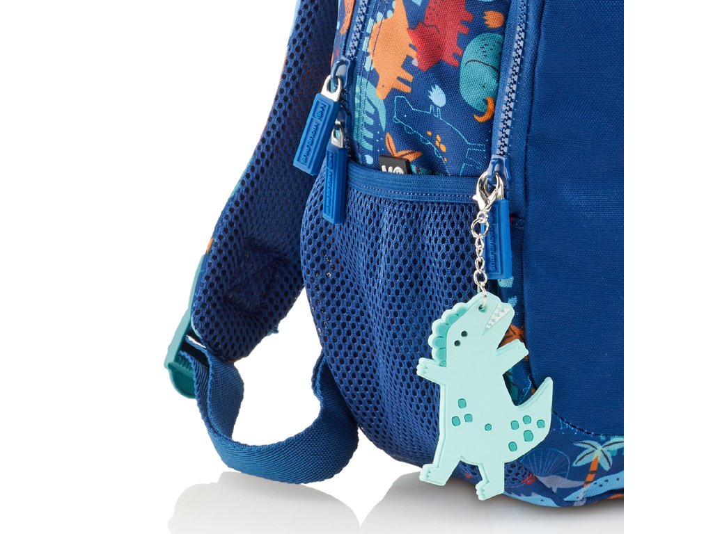Lehký veselý batůžek s klíčenkou a roztomilým motivem dinosaura. Polstrovaná záda vč. popruhů pro pohodlné nošení během celého dne. Dvě postranní otevřené kapsy jsou ideální pro umístění láhve nebo jiných drobností.Doplňkové parametry