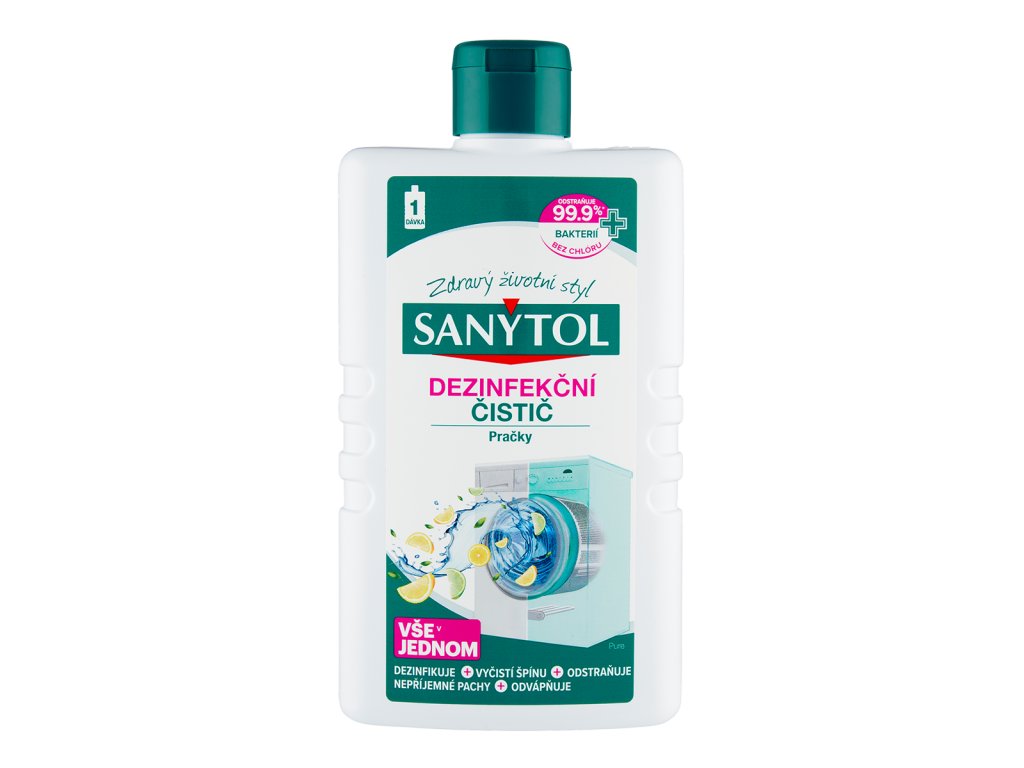 Svěřte svoji pračku skutečným profesionálům. Sanytol čistič pračky precizně odstraňuje nečistoty, vodní kámen a ničí 99,9 % bakterií. Všechny tyto vlivy mohou narušovat výkon pračky a způsobit nepříjemný zápach prádla. Před použitím používejte rukavice. Aplikujte 50 ml roztoku (5 uzávěrů) na houbu nebo hadřík. Vyčistěte od zbytků špíny zásobník na prací prostředek, okénka a těsnění. Nechte působit 5 minut. Nalijte zbytek čističe (190 ml) do zásuvky na prací prostředek a zapněte pračku bez prádla na cyklus 60 °C. Po skončení odstraňte zbylé nečistoty, které se během praní uvolnily.Doplňkové parametry