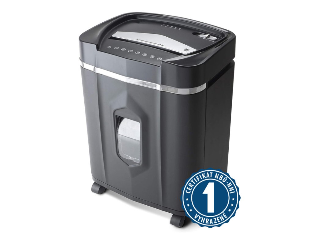 Skartovací stroj atraktivního designu pro malé kanceláře vhodný pro skartaci dokumentů o šířce 225 mm. Stroj je standardně vybaven automatickým systémem start/stop, zpětným chodem, tepelnou pojistkou motoru proti přehřátí, signalizací přeplněného koše. Lze skartovat sešívací sponky a kreditní karty. Vestavěný chladicí ventilátor umožňuje nepřetržitý provoz po dlouhou dobu. Tichý chod stroje-65 dB. Odpadní nádoba s průhledným okénkem o objemu 19 l. Stupeň utajení dle vyhlášky č. 528/2005 - 1 - vyhrazené. · Nádoba o objemu 19 l · řez 4 x 12 mm · kapacita 13 listů (70g) · rozměry: 366 x 280 x 491 mm · hmotnost: 10,2 kgDoplňkové parametry