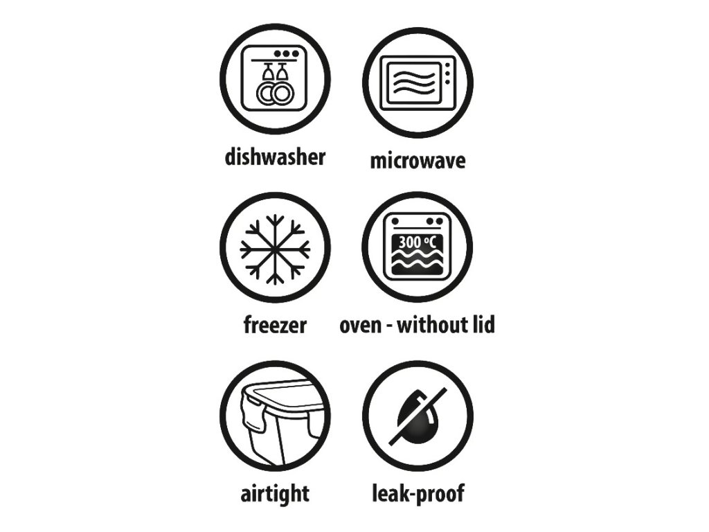 Zatímco většina dóz na potraviny je vyrobena z plastu, dózy na potraviny Alpina s víkem jsou vyrobeny z borosilikátového skla. Borosilikát je pevnější než normální sklo, což je docela zvláštní, protože váží méně. Pro borosilikátové sklo je typické, že se teplem neroztahuje a nesráží se, když vychladne, jako například v mrazáku. Díky tomuto materiálu každá nádoba na potraviny Alpina odolá teplotám od -40 stupňů v mrazáku do 300 stupňů v troubě. Když do trouby vložíte nádobu na potraviny s víkem, zvládne teplotu až 100 stupňů.