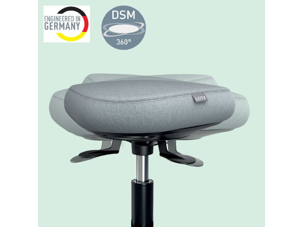 Balanční stolička Leitz Ergo podporuje aktivní sezení a zdravé držení těla. Trojúhelníkový sedák z pěny s dvojí hustotou zajišťuje oporu i pohodlí. Technologie DSM umožňuje 360° pohyb pro posílení středu těla a zlepšení rovnováhy. Výška je nastavitelná (47–60 cm), potah ze 100% recyklovaného materiálu. Stolička má kolečka s automatickým uzamčením a stabilní 60cm základnu. Certifikace IGR, GS a TÜV. Rozměr: 600 × 470 × 600 mm.Doplňkové parametry