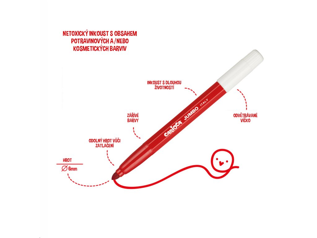 Perfektní společník pro děti od 24 měsíců, kteří objevují svět kreslení. Bezpečný zaoblený hrot je odolný proti vtlačení a odolá i tlaku dětských ručiček. Široké tělo umožňuje snadnou manipulaci a pohodlné vybarvování i větších ploch. Netoxický inkoust snadno odstraníte z pokožky a textilu vodou, takže se tvoření obejde bez starostí. Dermatologicky testované, odvětrávané víčko pro maximální bezpečnost. Pro děti mladší 3 let doporučujeme dohled dospělých.Doplňkové parametry