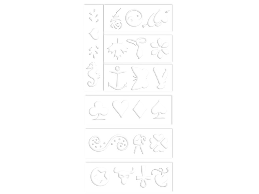 popisovač na kůži, dermatologicky testovaný inkoust, z kůže smývatelný mýdlem a vodou, samolepicí šablony s 16 motivy, tetování vydrží až 60 hodin, válcový hrot, šířka stopy 1 mmDoplňkové parametry